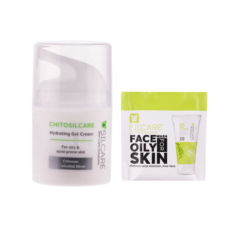 کرم ژل سیلکِر مدل Chitosil حجم 50 میلی لیتر مناسب برای پوست چرب و آکنه ای به همراه مایع شستشو صورت