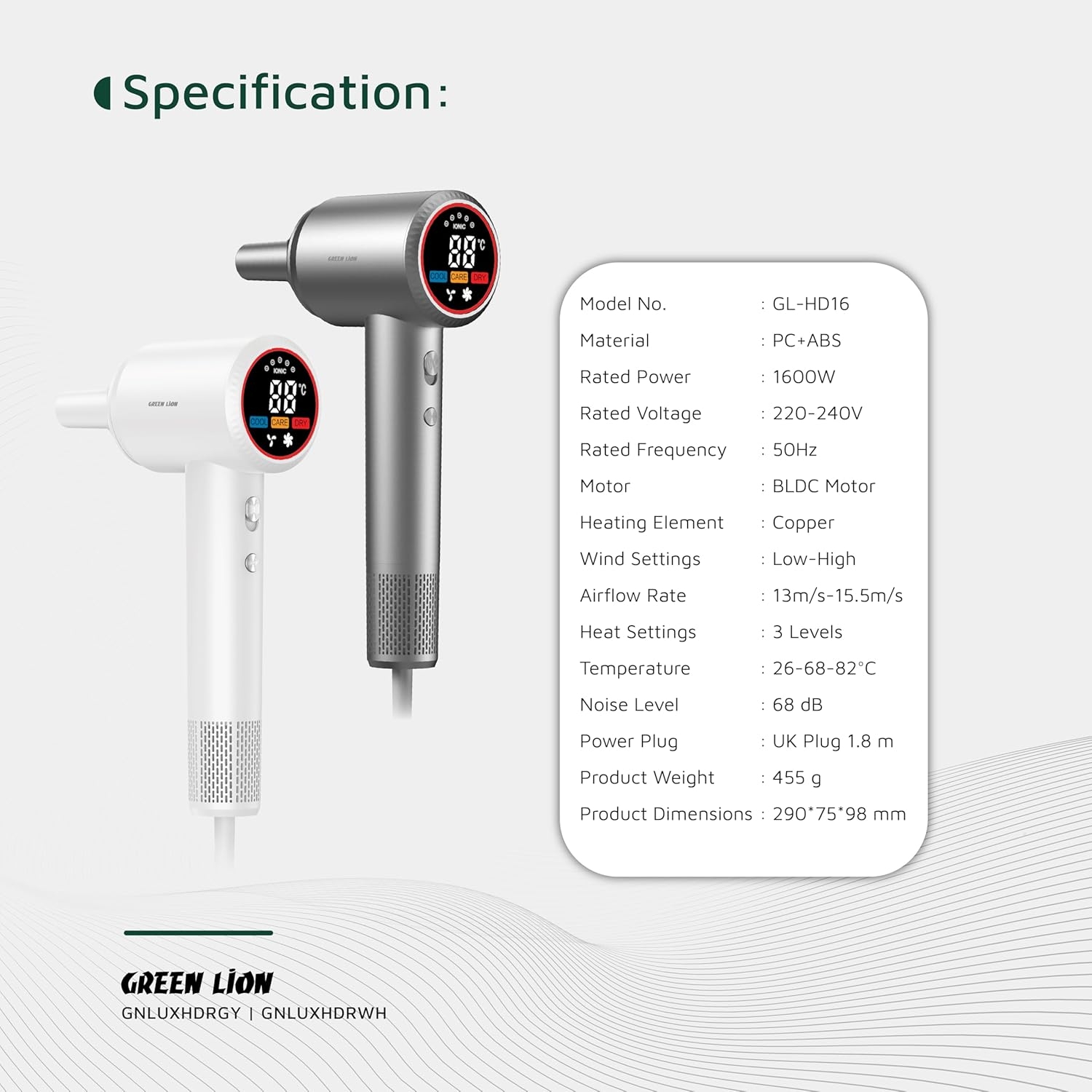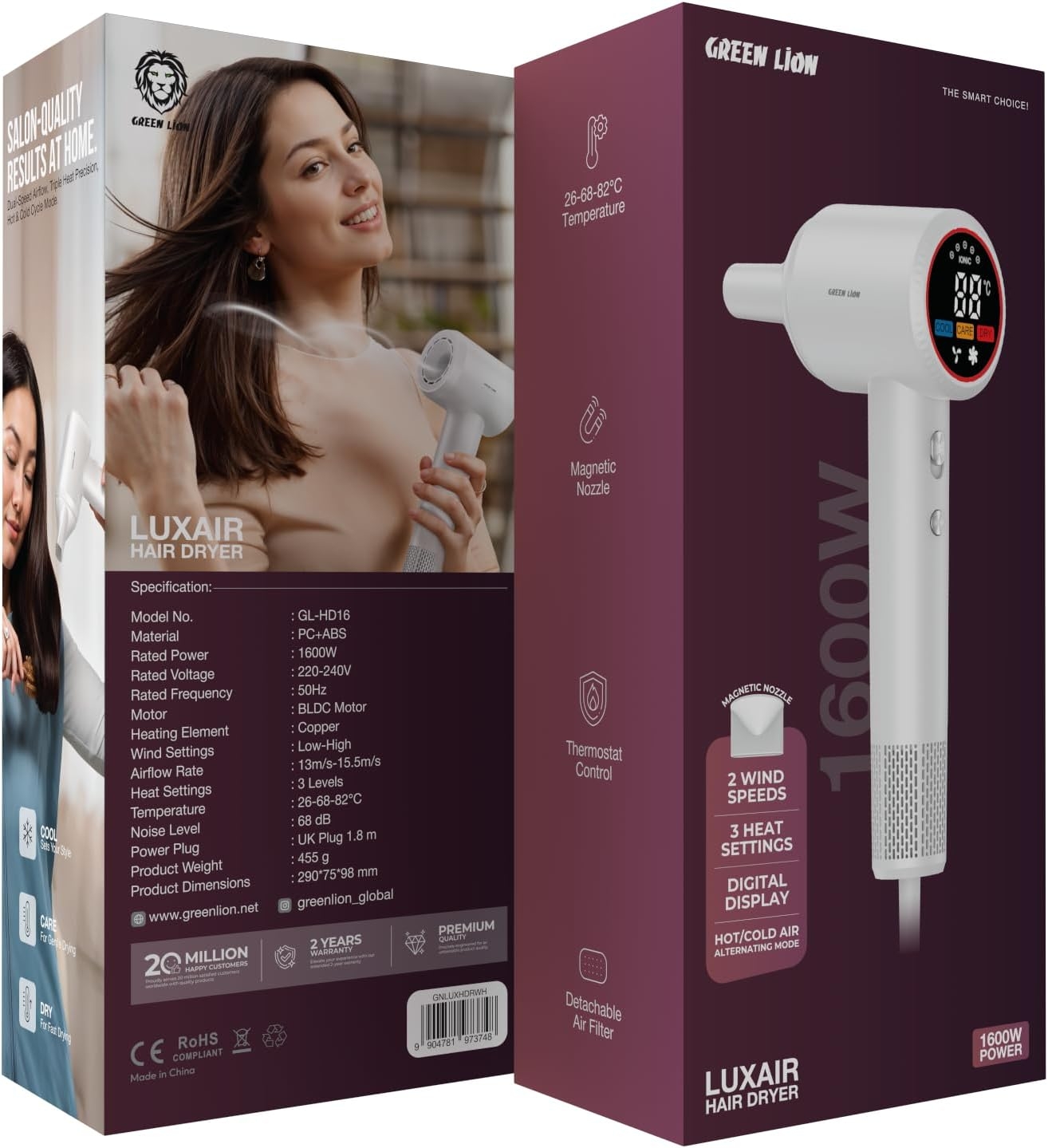 سشوار حرفهای 1600 وات گرین لاین مدل LUXAIR با 3 تنظیم دما و حالت مراقبت از مو