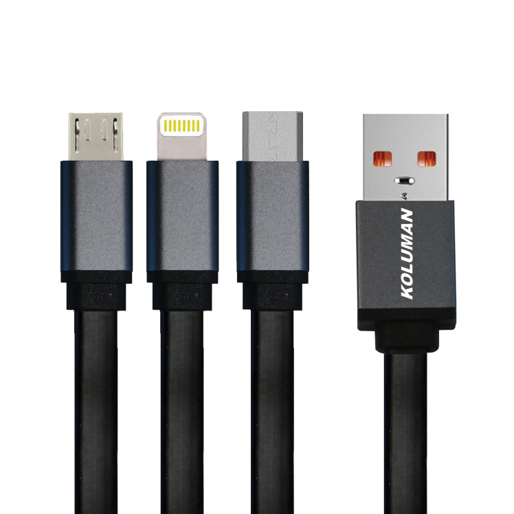 مقایسه کابل انتقال دیتا و شارژ سه سر لایتنینگ و microUSB و type-c کلومن (koluman) مدل KD-23 اتمام موجودی