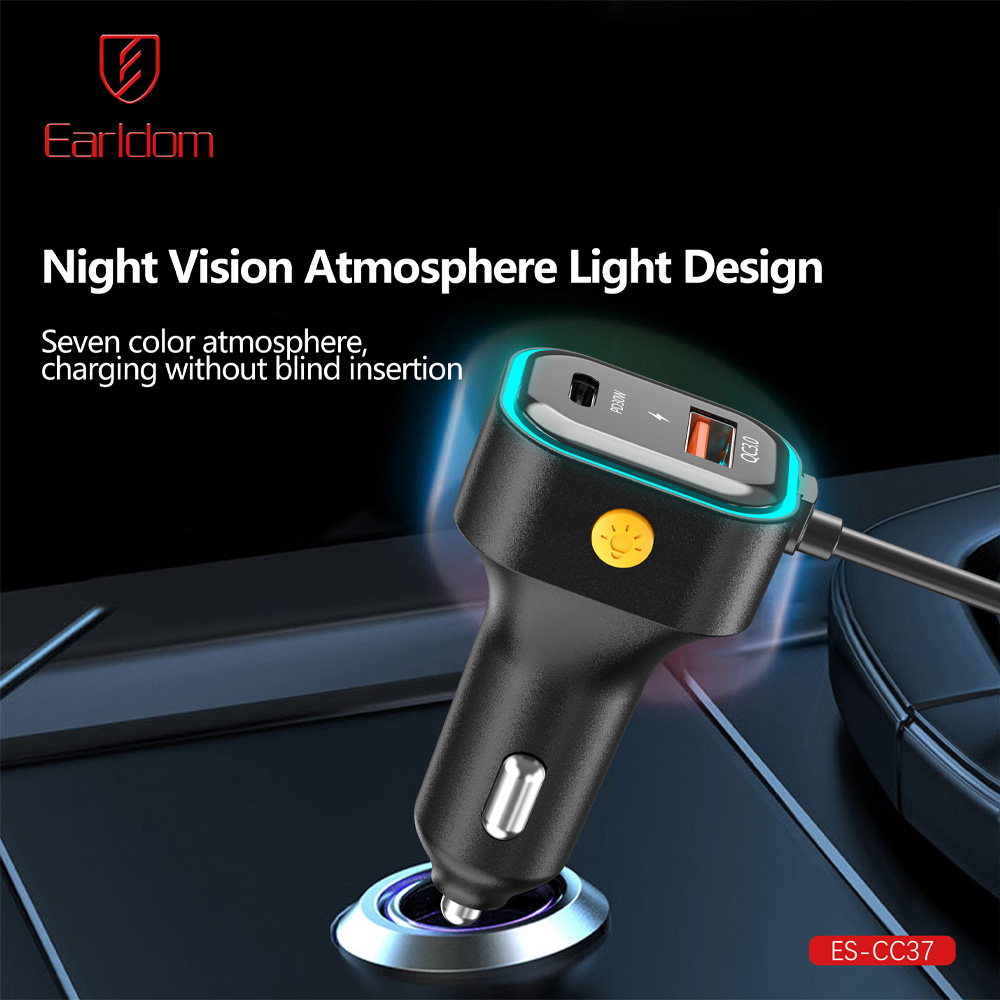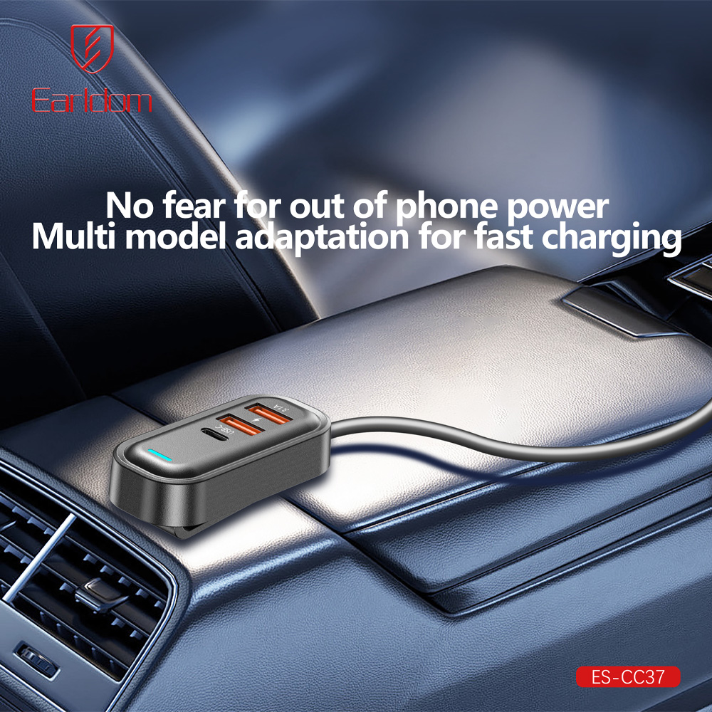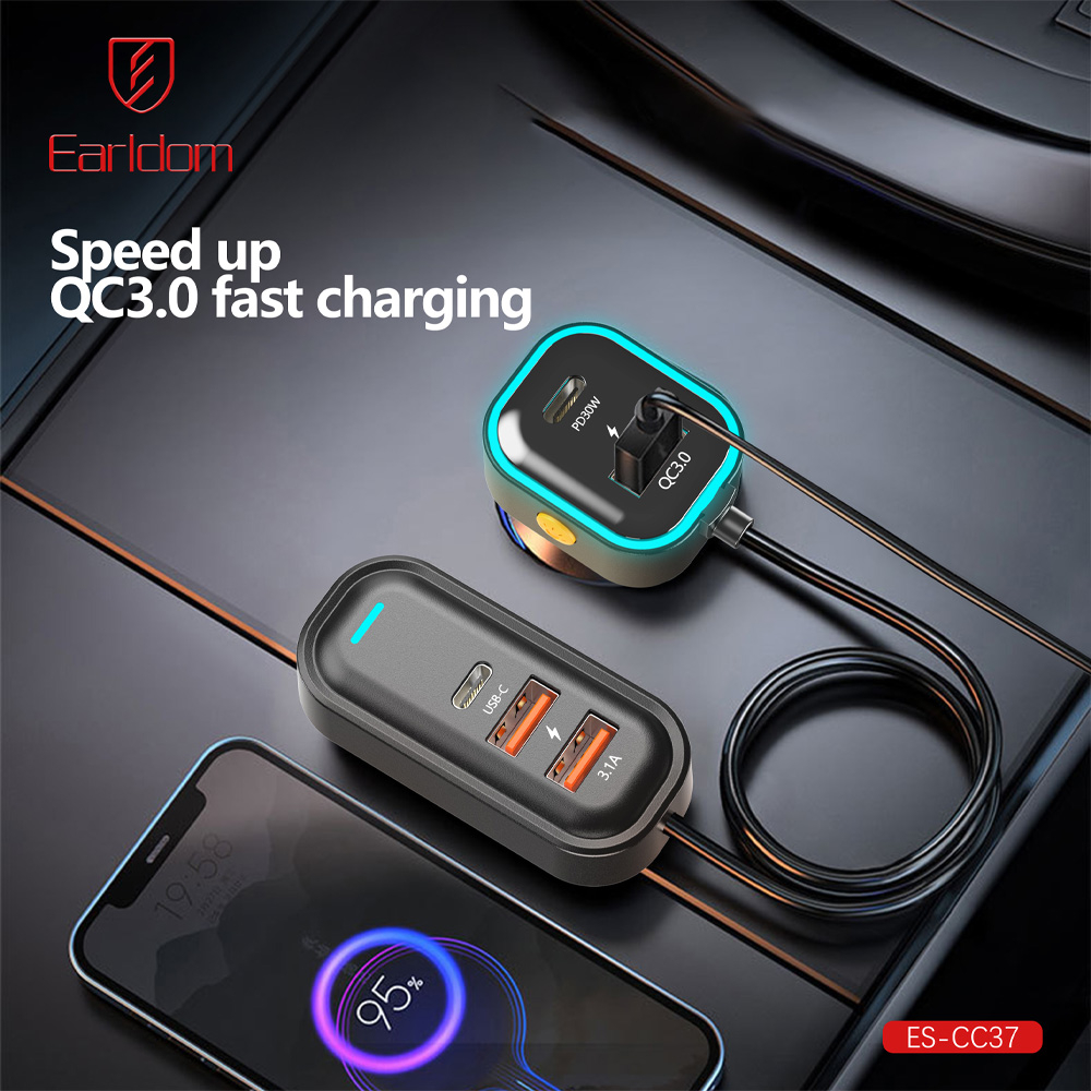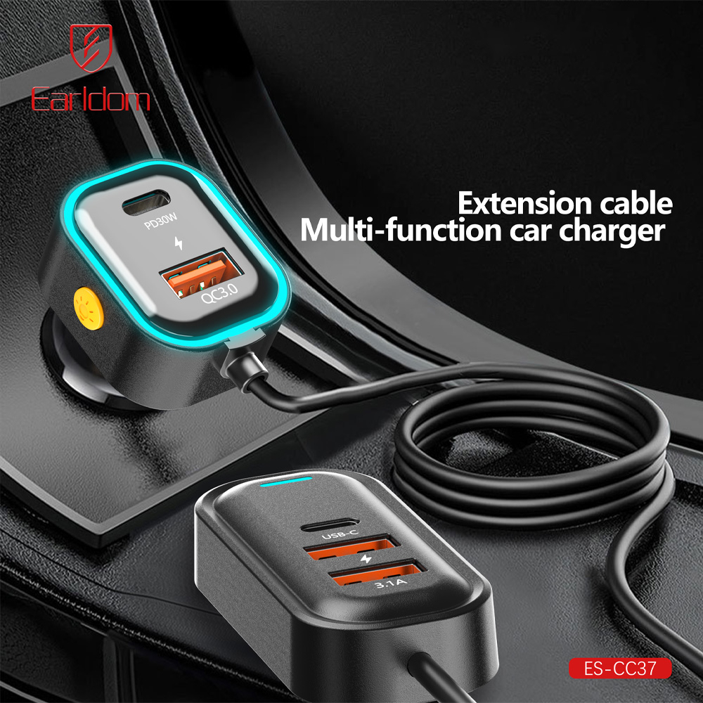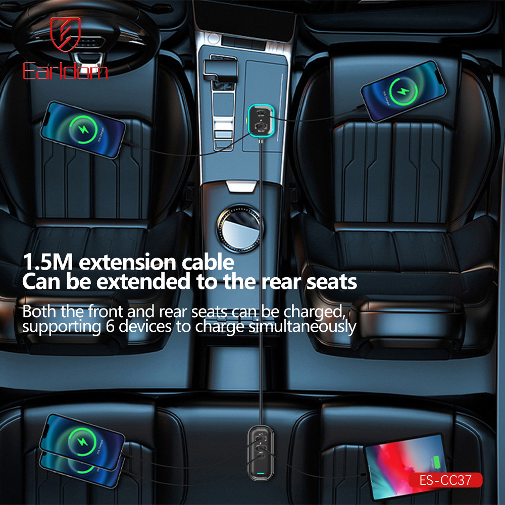 شارژر فندکی ۵ در ۱ ارلدام مدل ES-CC37، با 5 پورت خروجی، قابلیت شارژ سریع QC3.0 و توان خروجی 30 وات