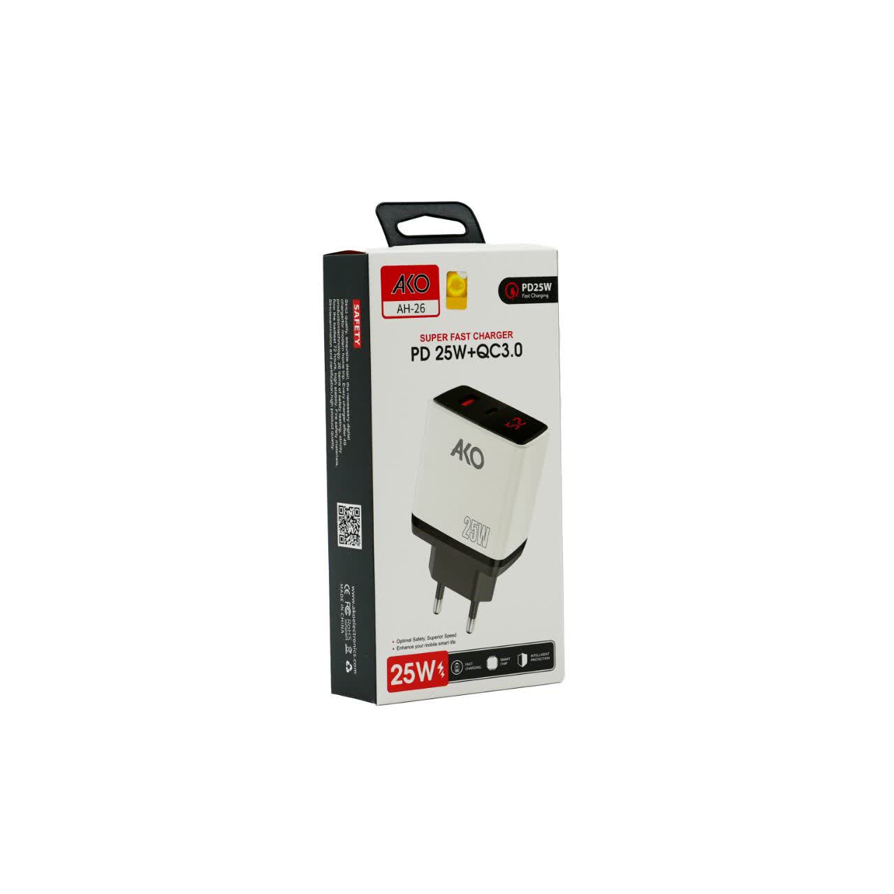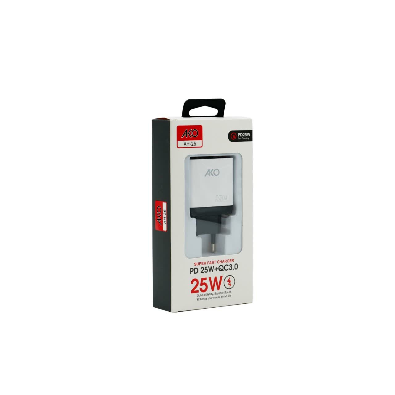 شارژر دیواری آکو مدل AH-26 با توان خروجی 25 وات و فست شارژ