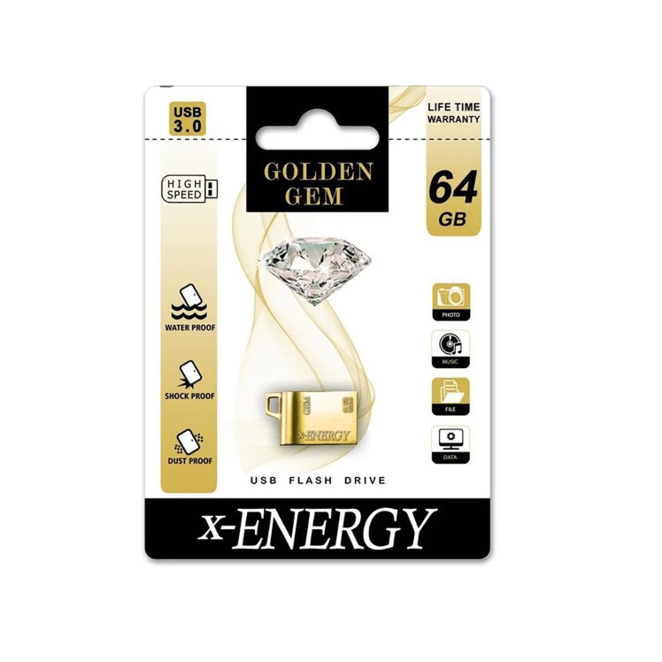 فلش مموری ایکس انرژی مدل GOLDEN GEM ورژن USB3.0 ظرفیت 64 گیگابایت