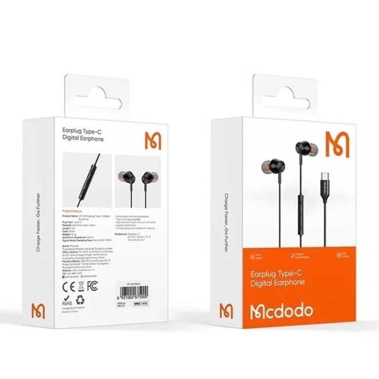 هندزفری Type C مک دودو Mcdodo HP-3490 به صورت In-Ear طراحی شده است و دارای هوک سیلیکونی برای قرارگیری بهتر در داخل گوش می باشد. سری گوشی ها سیلیکونی است و قرار دادن آن داخل گوش به راحتی انجام می شود و داخل گوش تکان نمی خورد تا با کیفیت خوب به شنیدن موسیقی وصدای بازی و مکالمه خود ادامه دهید. همچنین استفاده ازهندزفری تایپ سی Mcdodo HP-3490 با توجه به وزن سبک و زاویه اریب طراحی گوشی ها در گوش راحت است. طول کابل این هنذزفری تایپ سی 1.2 متر و آمپدانس 32 اهم است.همچنین این هندزفری دارای میکروفون MEMS که به راحتی می توانید با کمک تکنولوژی که در این هندزفری به کاررفته است با دوستان خود مکالمه بسیار واضح و خوبی داشته باشید.