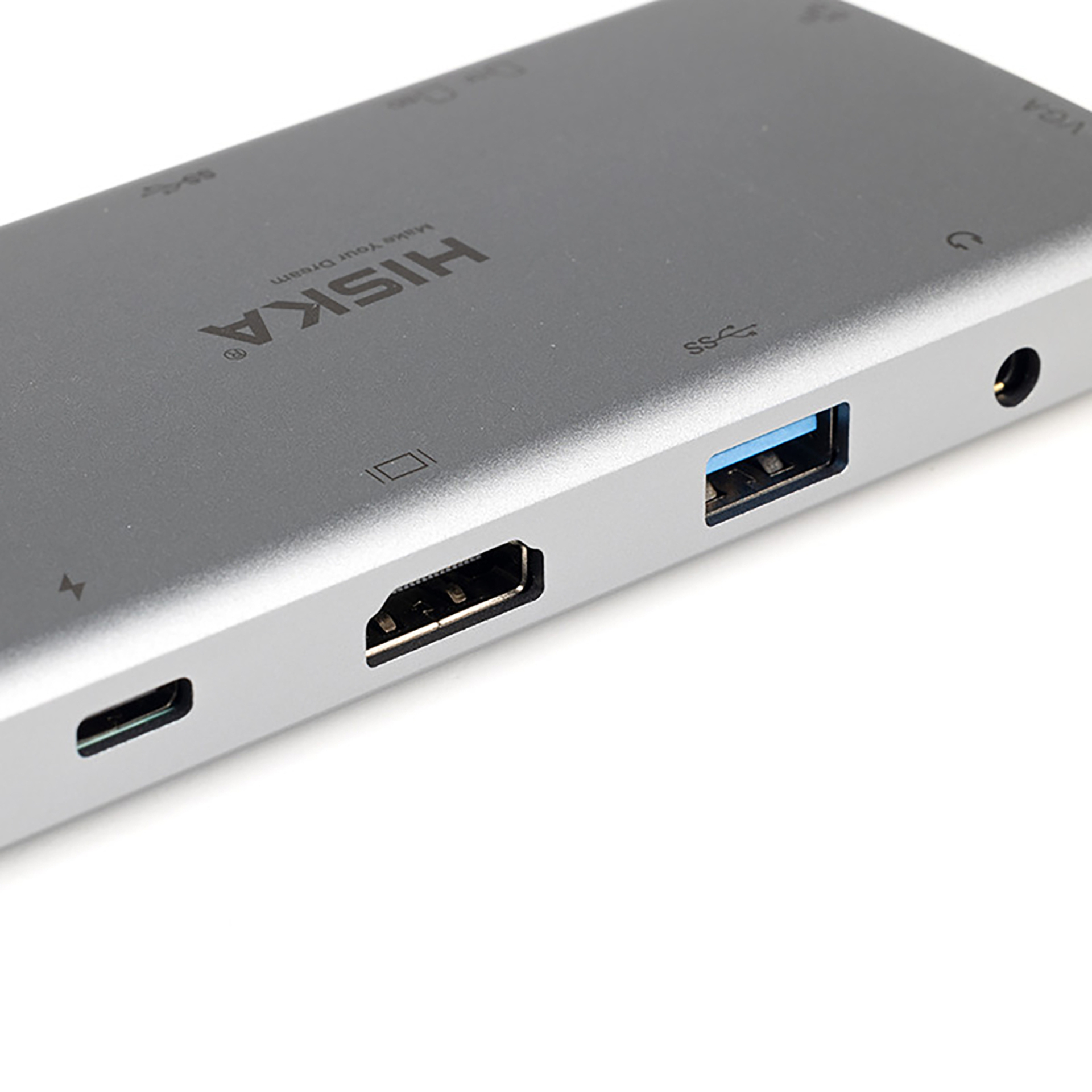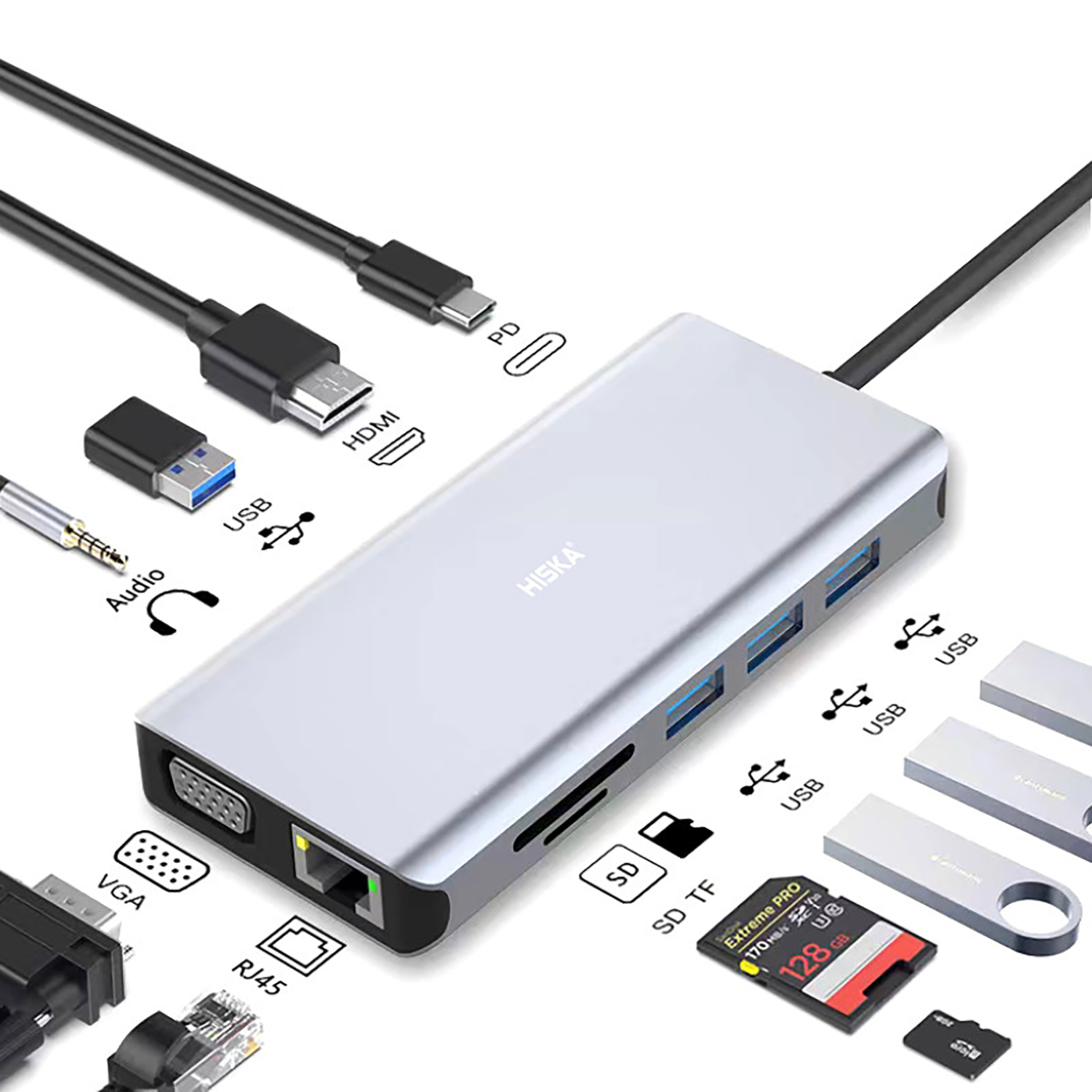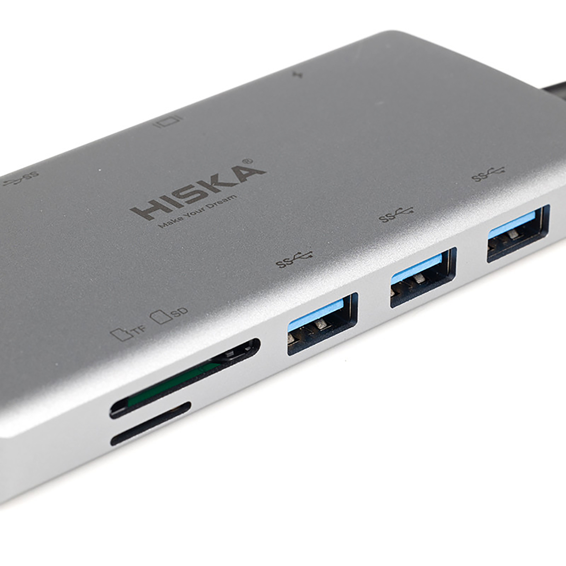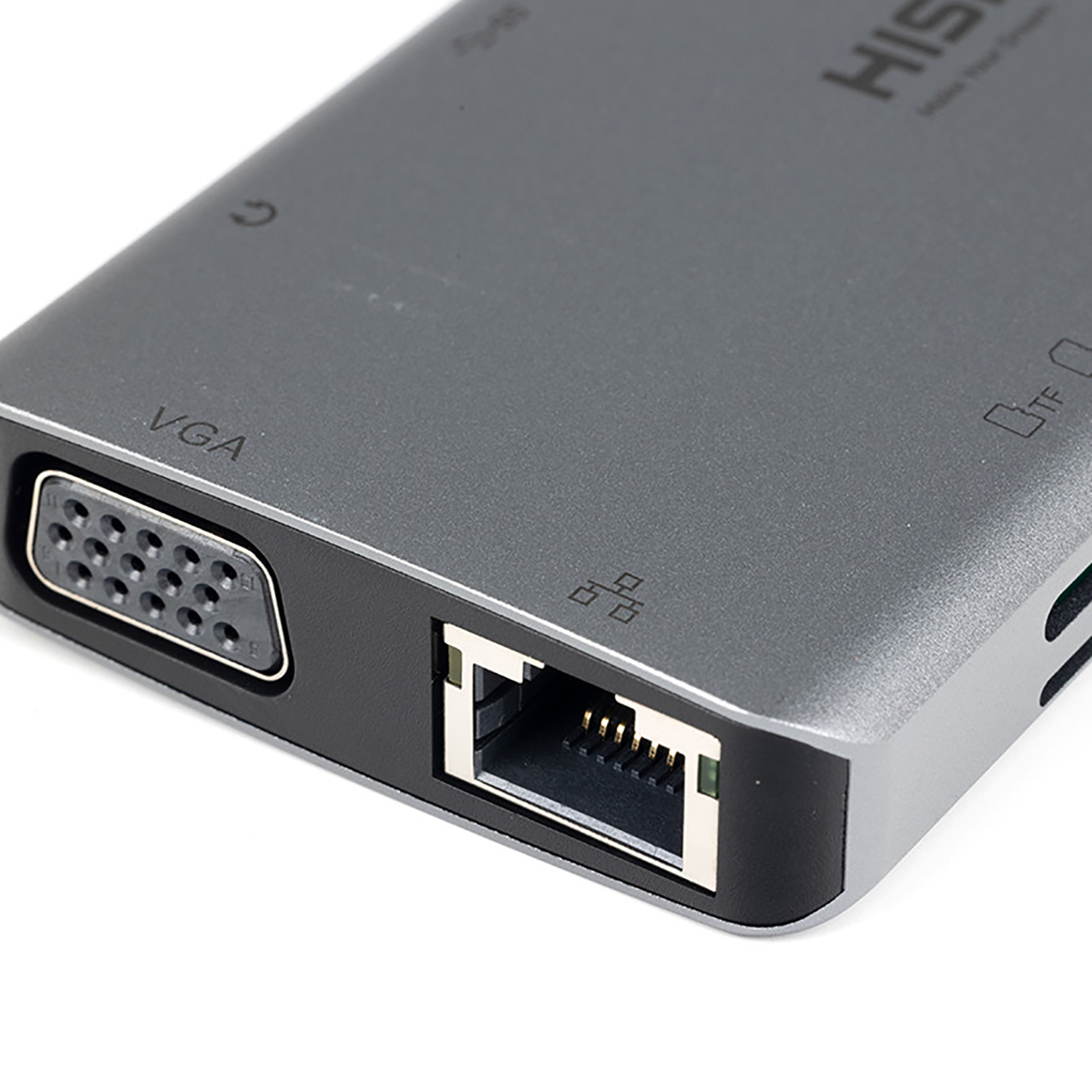 هاب چندکاره هیسکا مدل HR-51 از آلیاژ آلومینیوم ساخته شده که در برابر ضربه و آسیب بسیار مقاوم می باشد و بخوبی پاسخگوی نیاز کاربران جهت استفاده همزمان چند دستگاه که دارای چند پورت مختلف هستند ، میباشد . این هاب با داشتن دو پورت Type-C امکان شارژ با قابلیت PD را در اختیار شما میگذارد و حداکثر توان آن 100 وات می باشد که قابلیت شارژ سریع انواع نوت بوک و لپ تاب های 100 واتی را برایتان مهیا نموده است. پورت دیگر تایپ سی امکان انتقال اطلاعات را به شما می دهد. اگر سرعت انتقال دیتاها برایتان اهمیت دارد دو درگاه USB 3.0 با سرعت 5Gbps این امکان را در اختیار شما قرار داده و در مدت زمان کوتاهی تمامی اطلاعات و فایل های بزرگ شما را بارگذاری خواهد نمود. یک پورت شبکه RJ45 نیز برروی این هاب تعبیه شده که نیاز بسیاری از افراد در منزل یا محل کار می باشد . داشتن پورت LAN برای اتصال به اینترنت با سرعت های 1000Mbps و 100Mbps و 10Mbps را در اختیارتان قرار داده و با سرعتی بالا از اینترنت خود می توانید لذت ببرید. همچنین دارای درگاه HDMI برای تماشای سریال های مورد علاقه خود در نمایشگری بزرگتر یا وضوحی بالاتر و یا برگزاری کنفرانس های مهم میباشد، این پورت از کیفیت 4K HD و فرکانس 30 هرتزی برخوردار است. با استفاده از درگاه های SD و TF این هاب نیز قابلیت خواندن رم ها و استفاده رم ریدرها را داشته و از انتقال داده SD2.0 و خواندن همزمان پشتیبانی می کند.
