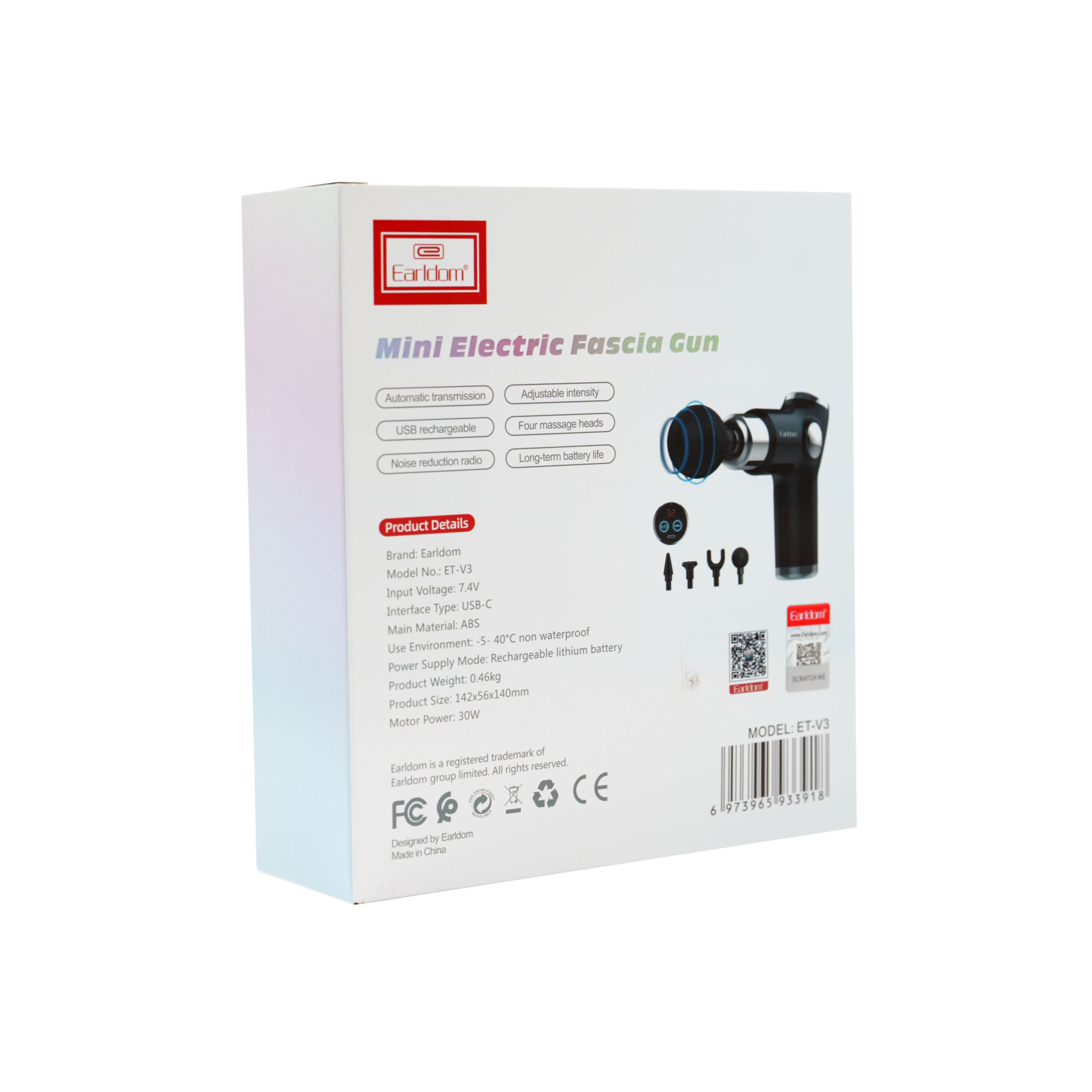 ماساژور تفنگی ارلدام مدل ET-V3 مجهز به 4 نوع سر ماساژ قابل تعویض با قدرت موتور 30 وات