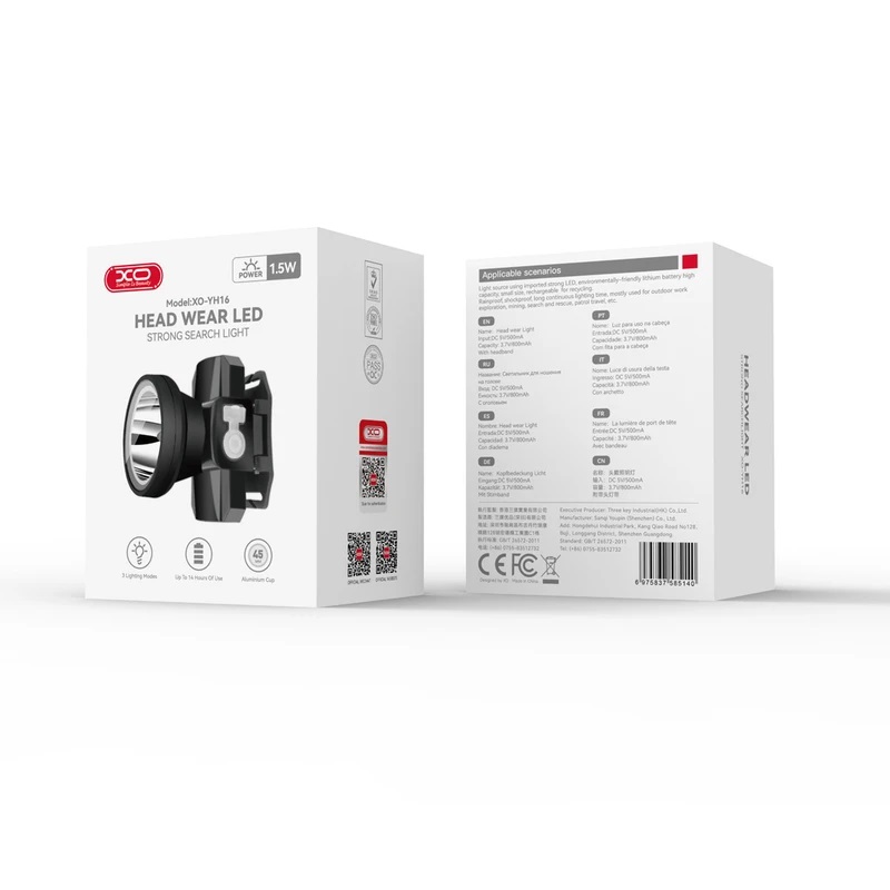 چراغ پیشانی(هد لامپ) ایکس او مدل YH16، سبک و پرنور با باتری 800mAh