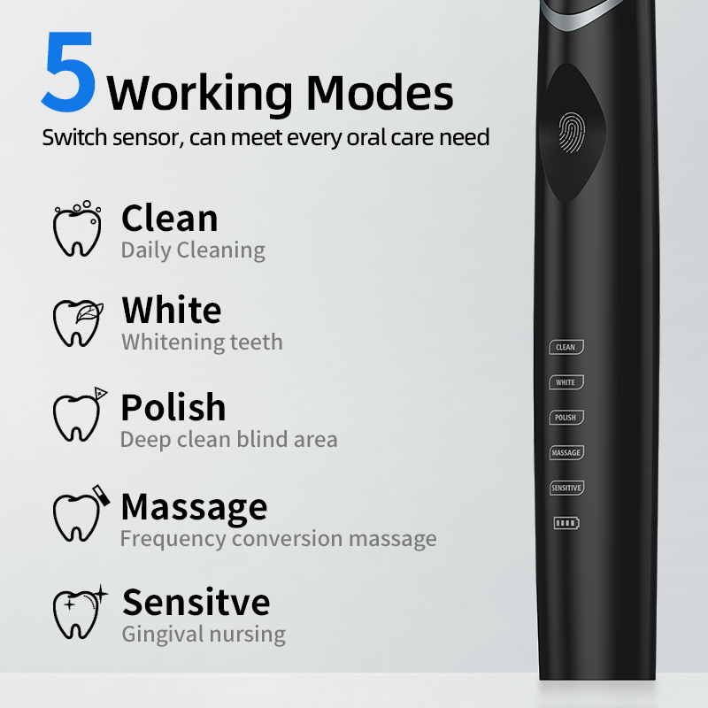 - 5 حالت عملکردی قدرتمند: تمیزکننده (31,000 VPM)، سفیدکننده (36,000 VPM)، پولیش (41,000 VPM)، ماساژ (36,000 VPM) و حساس (34,000 VPM)