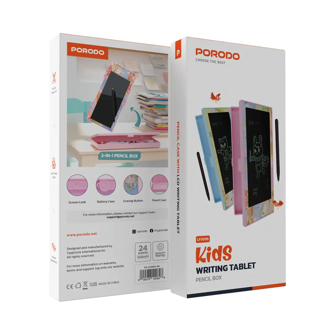 تبلت نویسندگی کودکان پورودو، دوست بینظیری برای مغزهای کوچک است تا خلاقیت خود را کشف کنند و فرآیند یادگیری خود را بهبود بخشند. این تبلت با طراحی مناسب کودکان، دارای یک تخته نقاشی قابل استفاده مجدد است و بچهها میتوانند بارها و بارها بدون ایجاد کثیفی، نقاشی کنند، بنویسند و پاک کنند. قفل صفحه تککلیدی، امنیت آثار هنری فرزند شما را در حین لذت بردن از تمرین خلاقانهشان تضمین میکند. با قابلیت قفل صفحه، والدین میتوانند به راحتی صفحه را قفل کنند تا از حذف تصادفی جلوگیری شود. این تبلت همچنین دارای یک دکمه پاکشونده برای پاک کردن سریع و کارآمد صفحه است و شروع دوباره را برای کودکان در هر زمان ممکن آسان میکند. این تبلت همچنین شامل یک قاب باتری برای استفاده طولانی مدت و یک جا مدادی است که میتوانند قلم خود را در آن قرار دهند تا همه چیز مرتب باشد. تبلت نویسندگی کودکان پورودو که برای سرگرمی، آموزش و بازی