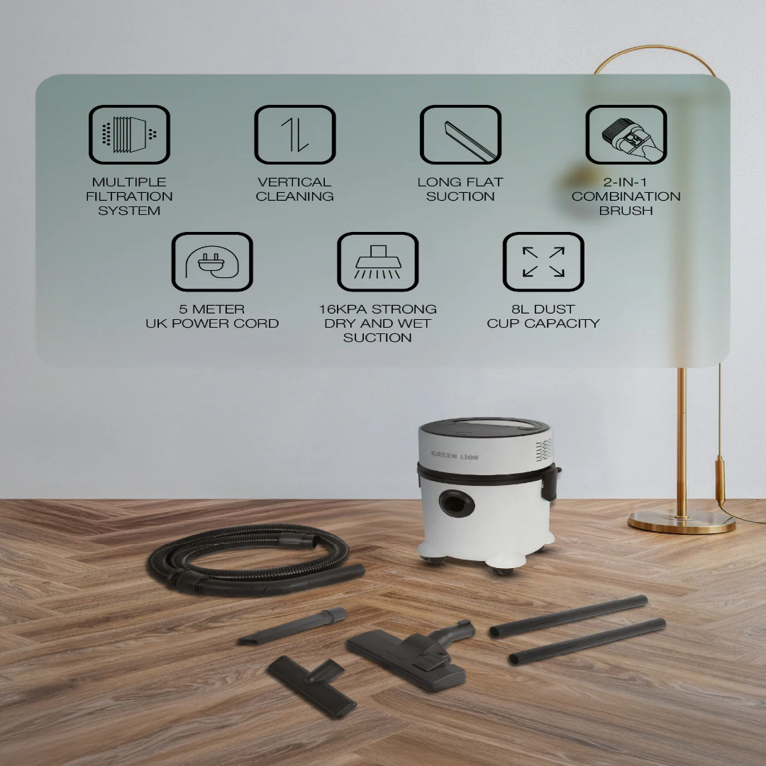 جاروبرقی دو کاره گرین لاین مدل GN2IN1VCMCWH با مکش قوی 1000 وات و فیلتر HEPA و مخزن 8 لیتری
