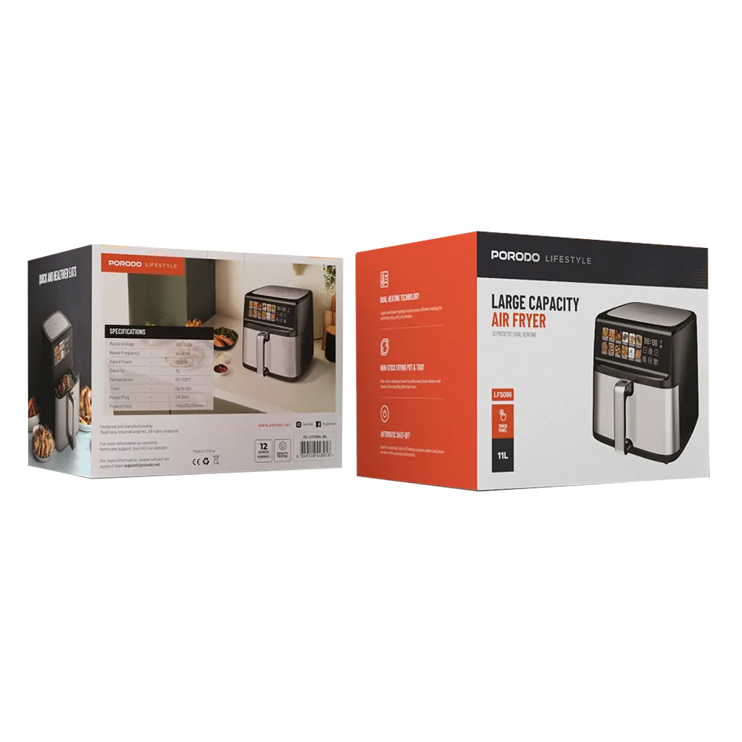 با معرفی سرخکن هوای Porodo Lifestyle با ظرفیت بالا، میتوانید بدون روغن، غذاهای سالم بپزید. این سرخکن دارای فناوری گرمایش دوگانه است که به پختوپز خوب کمک میکند. این سرخکن با موتور پرقدرت ۲۲۰۰ وات و محدوده دمایی بین ۶۰ تا ۲۰۰ درجه سانتیگراد کار میکند و هر بار نتایج ترد و خوشمزهای ارائه میدهد. یکی دیگر از ویژگیهای چشمگیر آن، ظرفیت TIL است که آن را برای وعدههای غذایی خانوادگی و استفاده از پنلهای لمسی برای کنترل آسان تنظیمات مناسب میکند. تمیز کردن آسان آن با قابلمه و سینی نچسب ارائه میشود، در حالی که سیستم خاموش شدن خودکار، ایمنی را افزایش میدهد. این سرخکن از طریق دوشاخه ۳ پین بریتانیایی کار میکند و این سرخکن هوا برای آشپزی آسان، یک وسیله ضروری در آشپزخانه مدرن شما است.