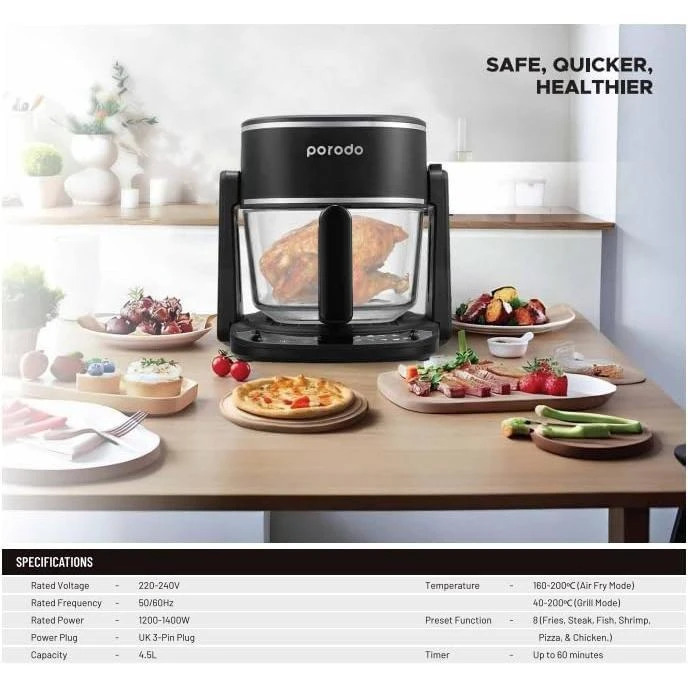 آشپزی خود را با سرخ کن و گریل باطری طراحی دوگانه Porodo Lifestyle تغییر دهید، همه کاره و عالی برای فشرده کردن بهترین عملکردهای سرخ کن بادی و گریل در یک محفظه. این دستگاه جدید که برای آشپزهای مراقب سلامتی ایدهآل است، به شما امکان میدهد از غذاهای خوشمزه با استفاده از روغن بسیار کم لذت ببرند و در عین حال طعم و مزهشان را حفظ کنند و مواد مغذی بیشتری به آن اضافه کنند. توان 1200-1400 وات، با ولتاژ کاری 220-240 ولت است. این سرخ کن و گریل هوا خیلی سریع گرم می شود و در نتیجه آماده شدن غذا را تسریع می کند. سرخ کن بادی پرودو به دلیل وجود تکنولوژی پیشرفته پخت، همیشه غذا را به صورت یکنواخت و ترد می پزد. این دستگاه چه سیب زمینی سرخ کرده، چه گریل، کباب یا هر چیز دیگری باشد، این دستگاه هر بار به طور کامل پخته می شود. با عملکردهای از پیش تعیین شده خود در این سرخ کن، از سیب زمینی سرخ شده تا استیک، ماهی، میگو، پیتزا و مرغ، پخت و پز بی پایان است و هر سلیقه ای را برآورده می کند. با دمای متغیر از 160-200 درجه سانتیگراد در حالت سرخ کردنی با هوا تا 40-200 درجه سانتیگراد در حالت گریل به طور دقیق طبخ کنید. انعطاف پذیری زیادی برای تطبیق فرآیند پخت و پز با نیازهای خاص شما می دهد.