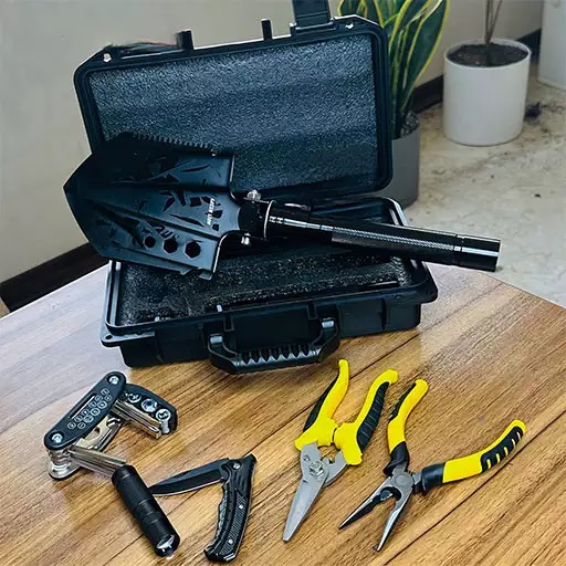 - ابزارهای همراه: بیل تاشو، دم باریک، کاتر سیم، ۲ عدد میله افزایش طول برای بیل، چاقوی تاشو، ست ابزار تاشو، چراغ قوه LED، سری حمله، کیف حمل، بند شانهای برزنتی
