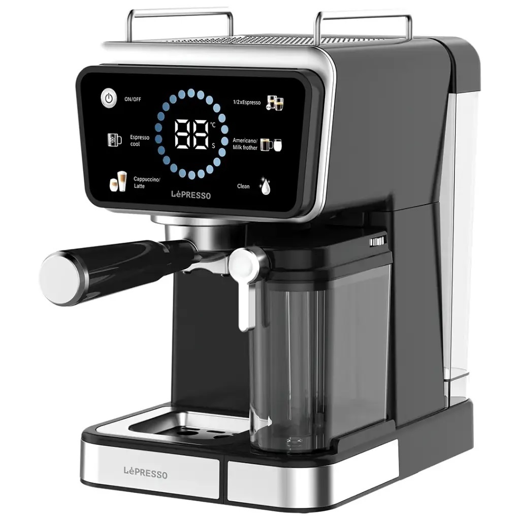 دستگاه قهوهساز لپرسو مدل LPCFFTEM0070 (LePresso Réveil) یک قهوهساز پیشرفته خانگی با امکانات حرفهای است که توانایی تهیه نوشیدنیهای گرم و سرد را دارد و با پمپ 20 بار، فوم شیر، کنترل لمسی و نمایشگر دیجیتال تجربهای نزدیک به کافیشاپ را در خانه فراهم میکند. ظرفیت بالا، سیستم تمیزکاری خودکار و طراحی کاربرپسند آن را برای مصرف روزمره یا میهمانیهای کوچک عالی میسازد.