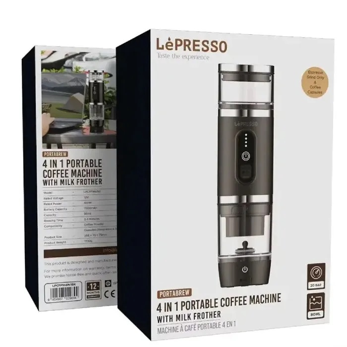 اسپرسوساز قابلحمل 4 در 1 لپرسو مدل LPCFFM4IN1 با کفساز شیر و پشتیبانی از کپسول و پودر قهوه