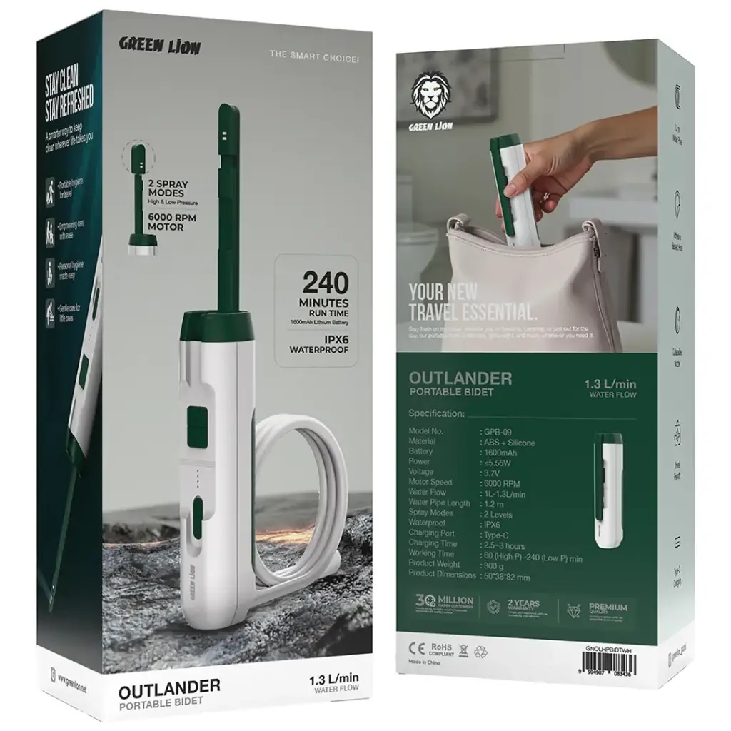 بیده مسافرتی قابل حمل گرین لاین مدل GNOLHPBIDT با دو حالت پاشش و شلنگ 1.2 متری