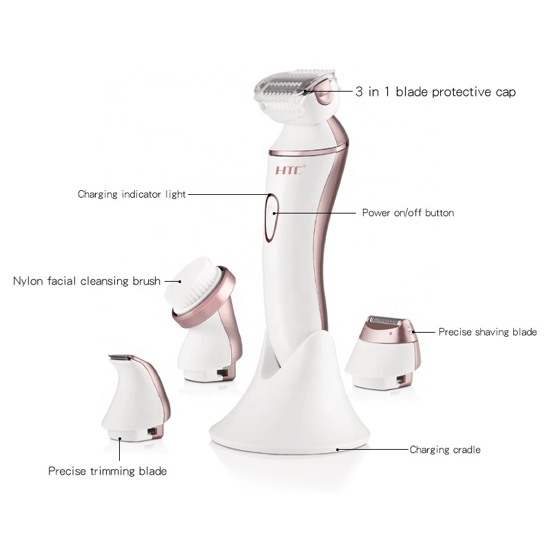 کیت اصلاح بانوان اچ تی سی مدل HL-023، دستگاه 4 در 1 ضد آب و بدون درد با براش صورت