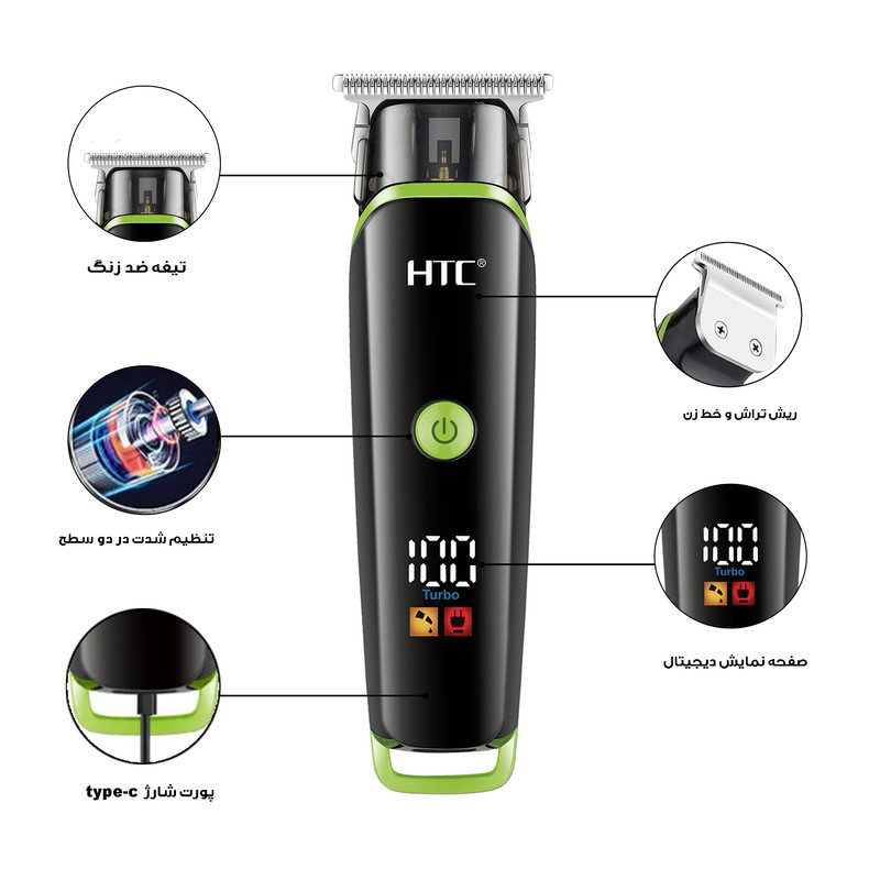 ماشین اصلاح اچ تی سی مدل AT-569، بیسیم، شارژ سریع، نمایشگر LCD و تیغه فولاد کربنی