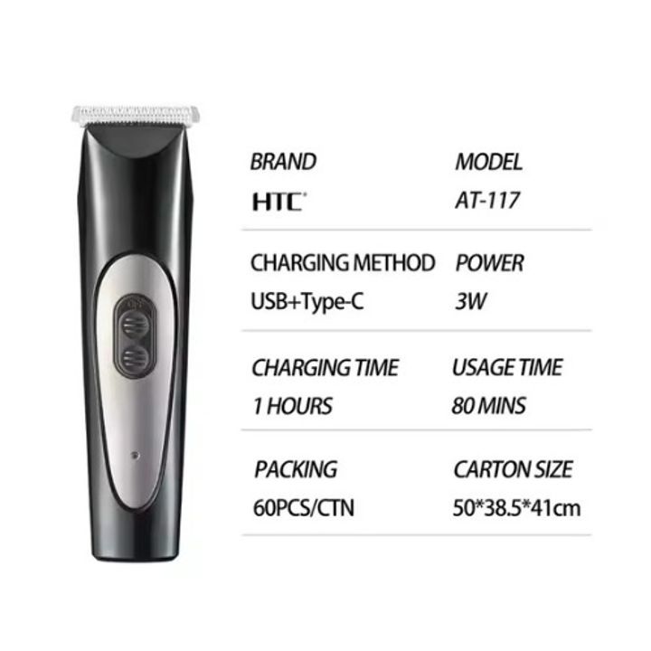ماشین اصلاح اچ تی سی مدل AT-117، موتور قدرتمند، شارژ سریع Type-C، تیغه استیل ضدزنگ