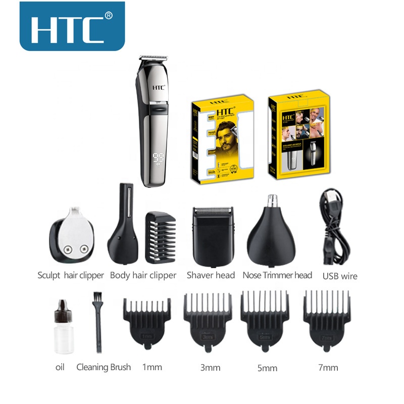 ماشین اصلاح 5 در 1 مردانه اچ تی سی مدل AT-1327، بیسیم، دارای LCD، تیغه فولادی