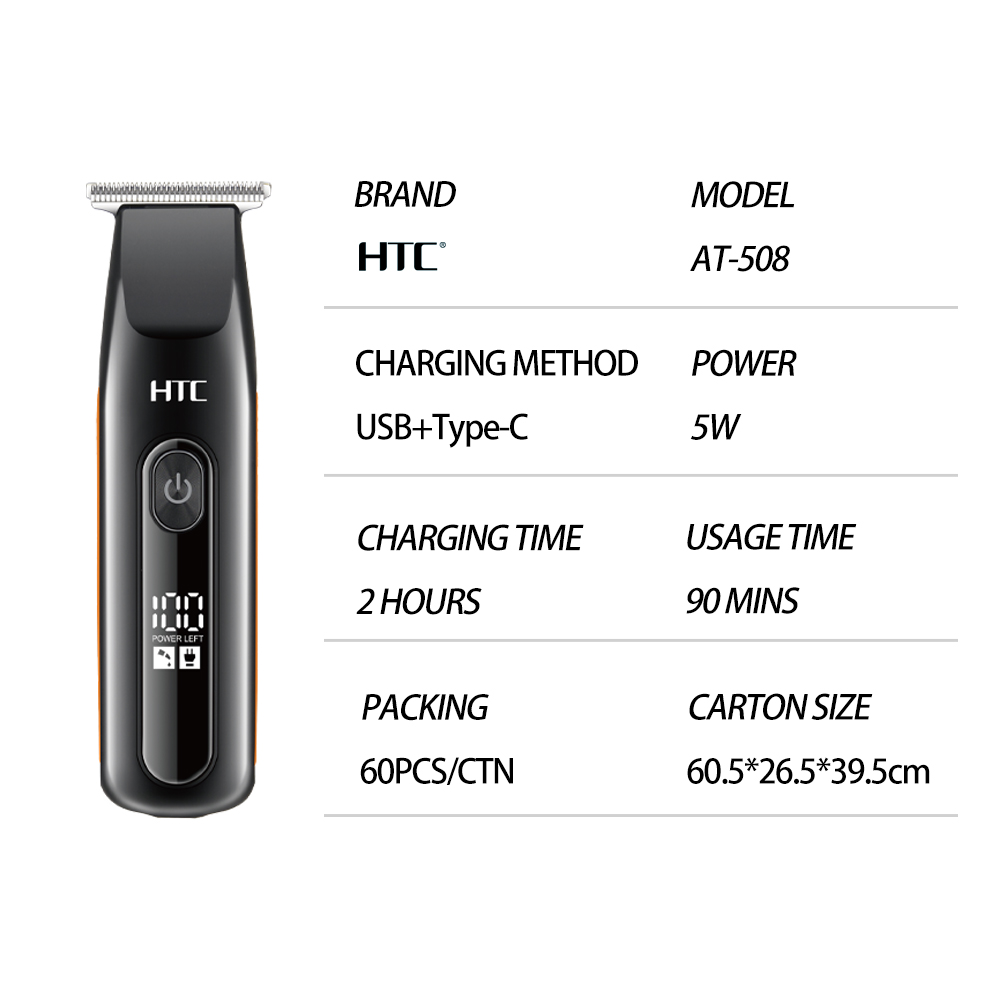 ماشین اصلاح بی سیم اچ تی سی مدل AT-508، دارای تیغه T-Blade و طراحی ارگونومیک