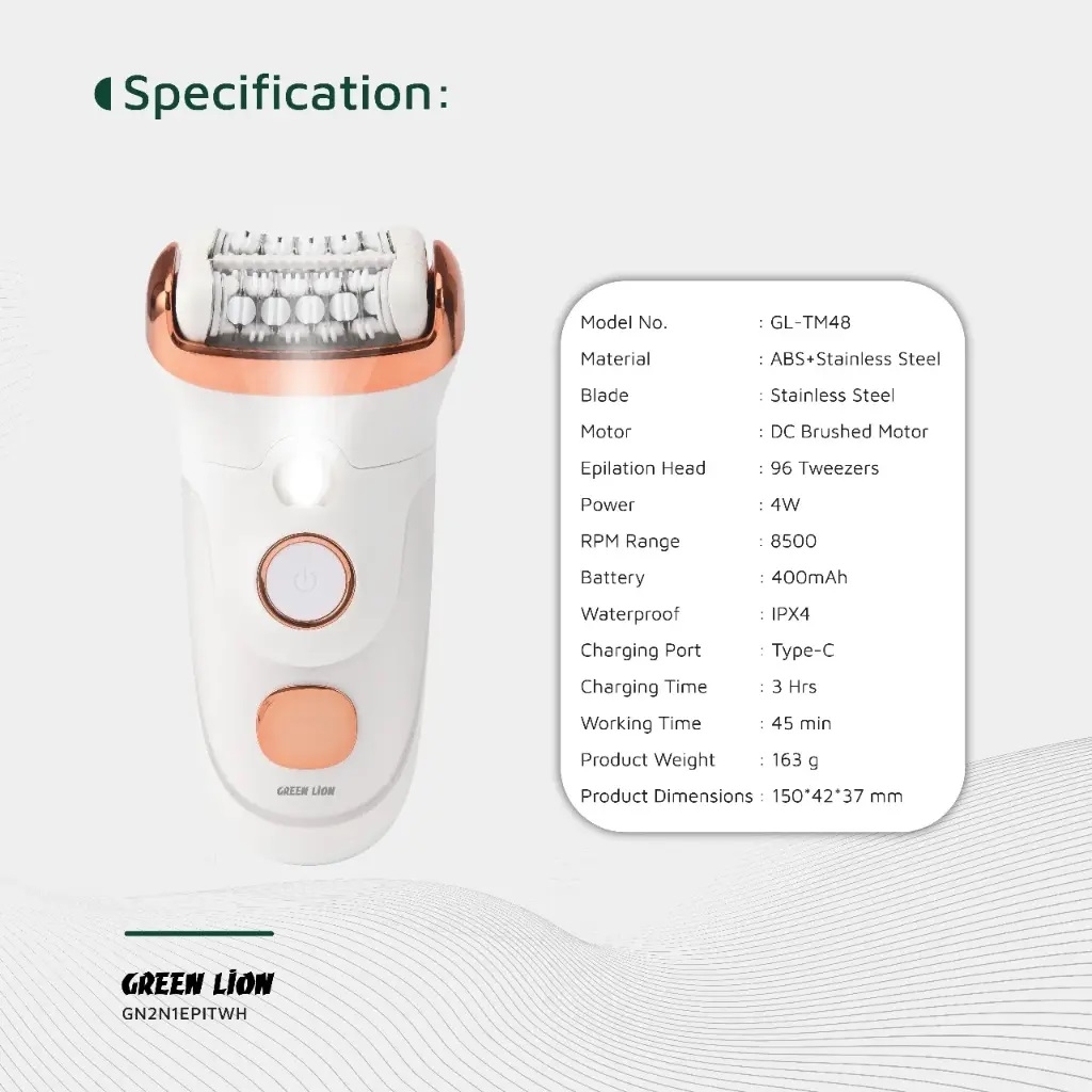 دستگاه اصلاح و اپیلاسیون بانوان گرین لاین مدل GN2N1EPITWH با تیغه ی استیل ضد زنگ و طراحی ارگونومیک