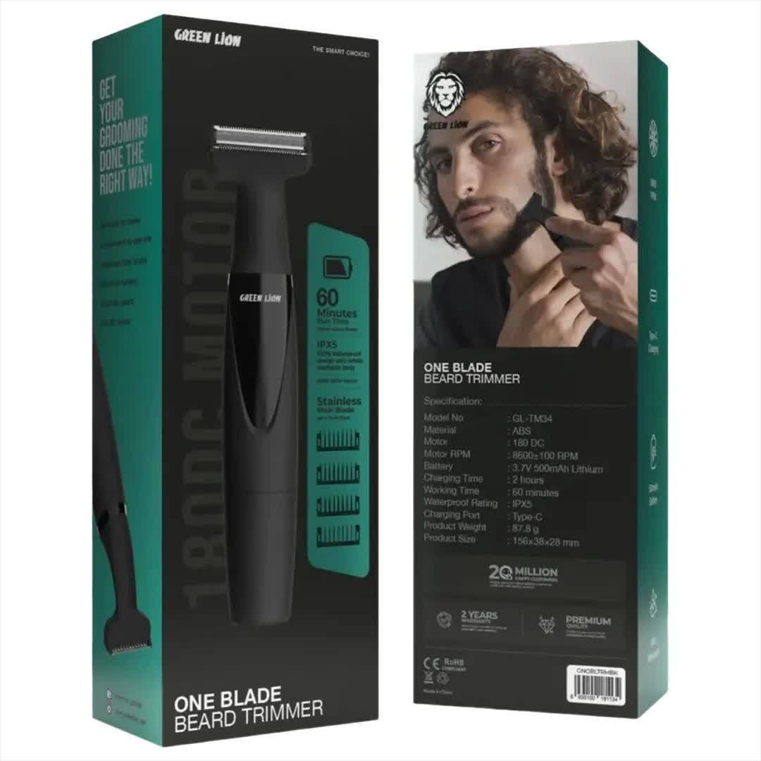 ماشین اصلاح گرین لاین مدل GNOBLTRMBK با تیغه استیل و باتری ۵۰۰ میلیآمپر