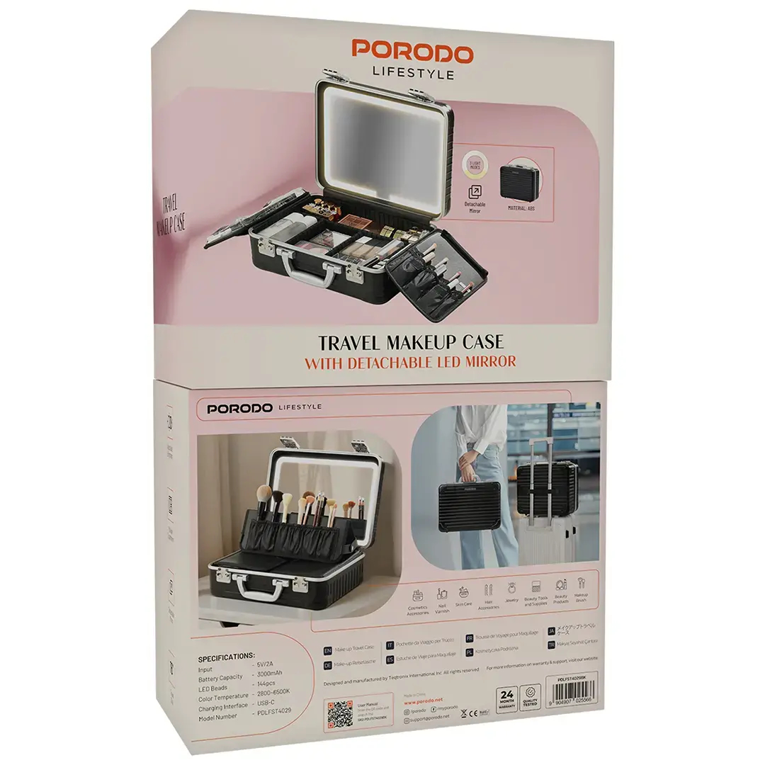 این کیف یک مزیت بزرگ برای دوستداران زیبایی است که زیاد جابهجا میشوند. کیف آرایش مسافرتی پورودو لایفاستایل مشکی با آینه LED جداشدنی، یک وسیله ضروری است. این کیف پلاستیکی ABS محکم ممکن است حجیم باشد، اما همچنان قابل حمل است و دارای محفظههای متعددی است که به شما کمک میکند وسایل ضروری خود را سازماندهی کنید و همه چیز را از لوازم آرایشی، برسها گرفته تا محصولات مراقبت از پوست مرتب نگه دارید. علاوه بر این، آینه LED قابل جابجایی با ۱۴۴ مهره LED خود، نوری در محدوده دمای رنگ ۲۸۰۰-۶۵۰۰ کلوین تولید میکند، که نشان میدهد نور بسیار نرم و بسیار زنده است و بنابراین راز آرایش فوقالعاده دقیق و زیبا را حتی در نقاط کمنور آشکار میکند روشنایی را میتوان با توجه به نیاز شما تنظیم کرد، به این معنی که میتوانید بسته به حال و هوای خود، یا یک نور ملایم محیطی یا نوری روشن و دقیق داشته باشید. آینه LED با یک باتری قابل شارژ 3000 میلیآمپر ساعتی کار میکند و دارای رابط شارژ USB-C با توان 5 ولت/2 آمپر است. بنابراین، این آینه میتواند شما را برای چندین ساعت مداوم، حتی در سفر، زیبا جلوه دهد. اگر به یک کیف آرایش فکر میکنید که حمل آن آسان است اما دارای ویژگیهای هوشمند است، پس این کیف، مد، راحتی و فناوری را در یک جا دارد. از این رو، این کیف به یک لوازم جانبی ضروری سفر برای هر کسی که میخواهد در همه زمانها و هر مکان بیعیب و نقص باشد، تبدیل میشود.