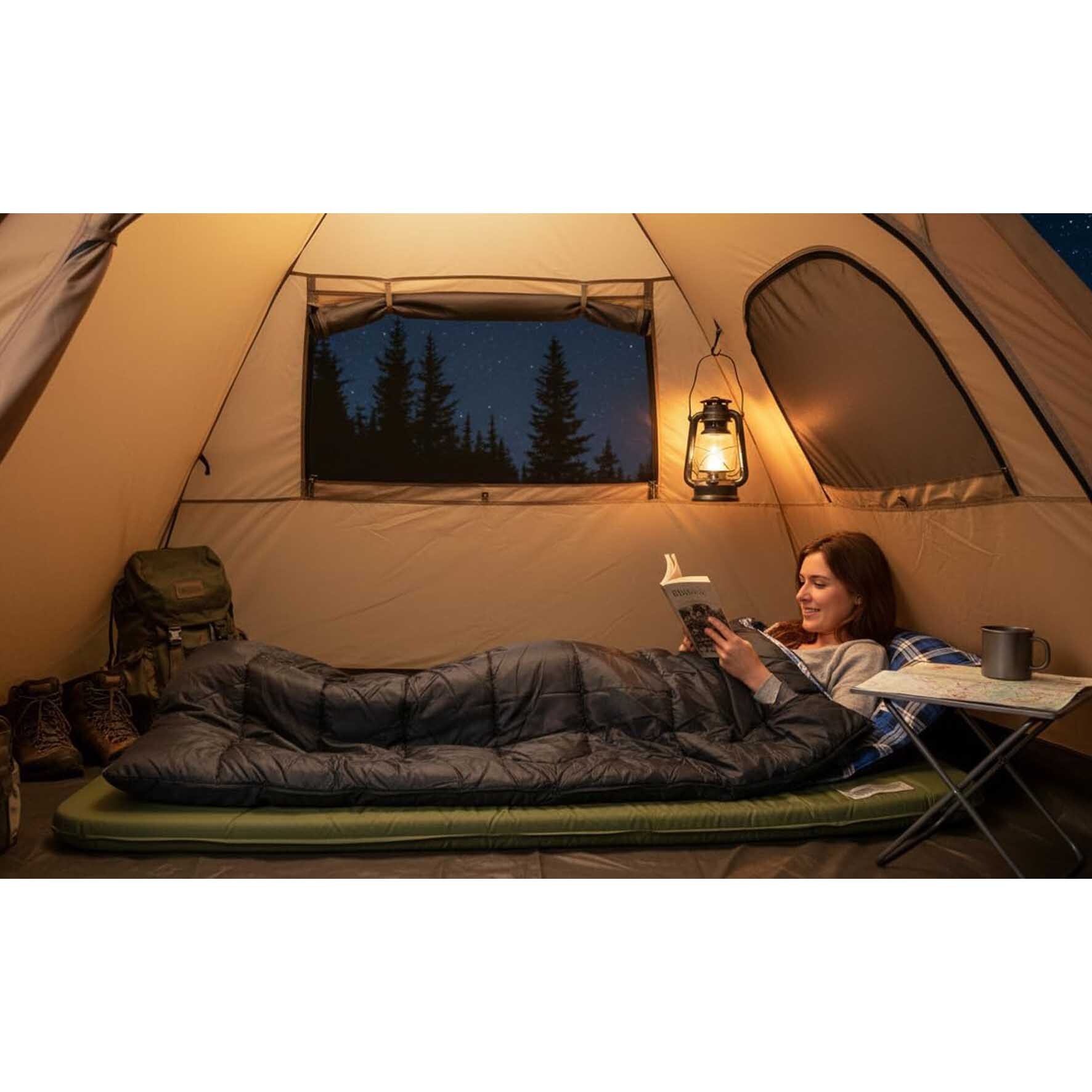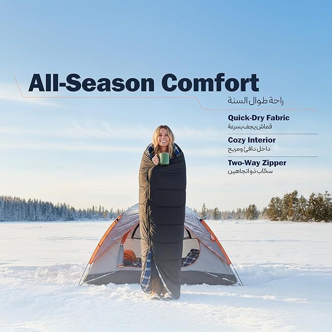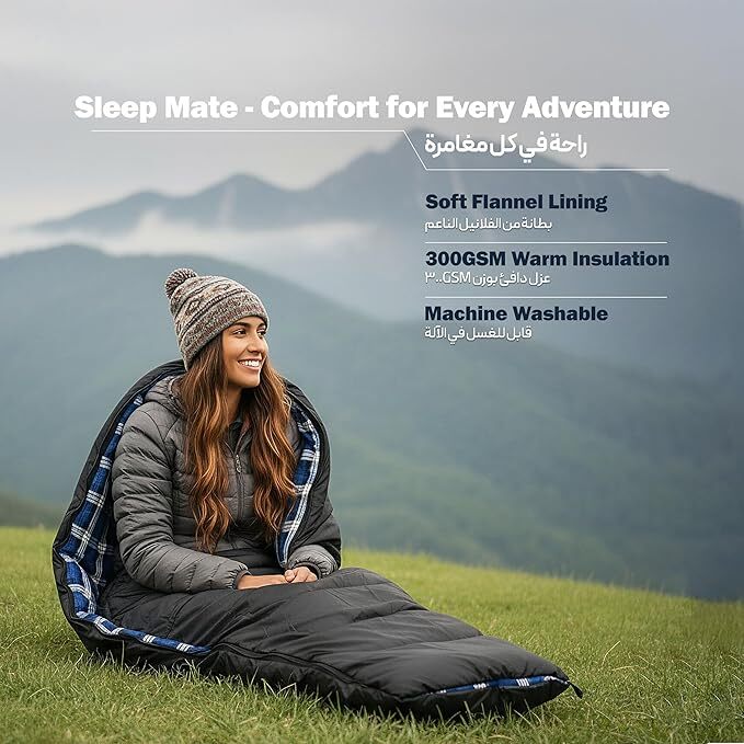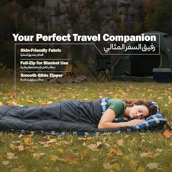 کیسه خواب بزرگ کمپینگ گرین لاین مدل GNSMCPSLBG چهار فصل با زیپ دوطرفه و آستر فلانل نرم