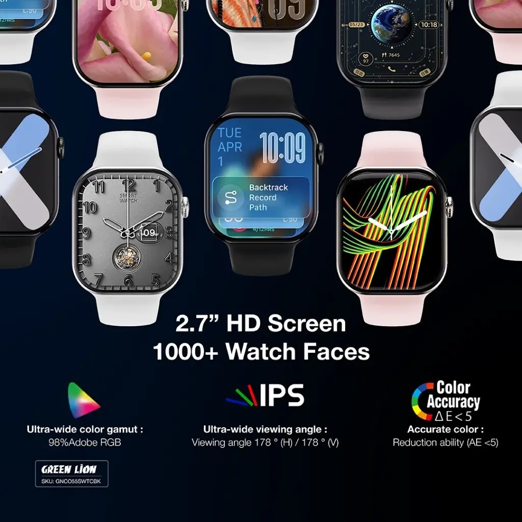 - طراحی پریمیوم: بدنه آلیاژی با روکش وکیوم و بند سیلیکونی بادوام، سبک و شیک برای هر موقعیت.