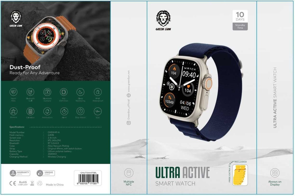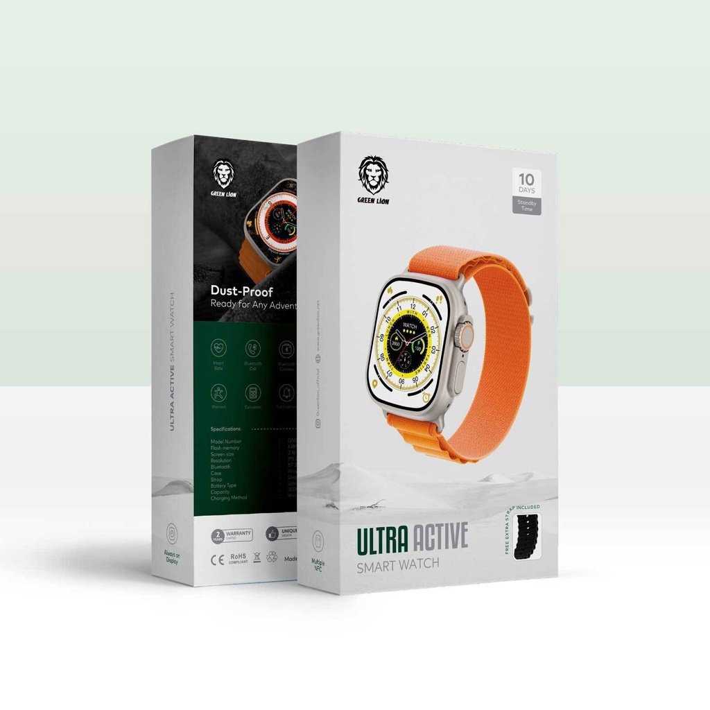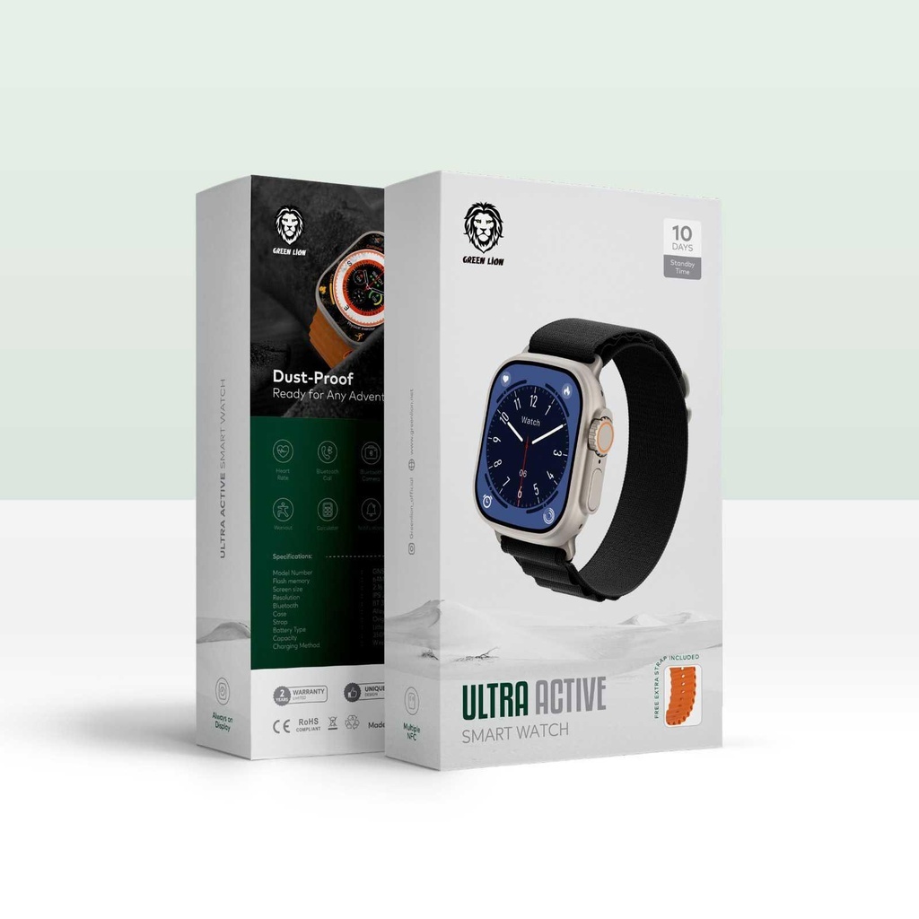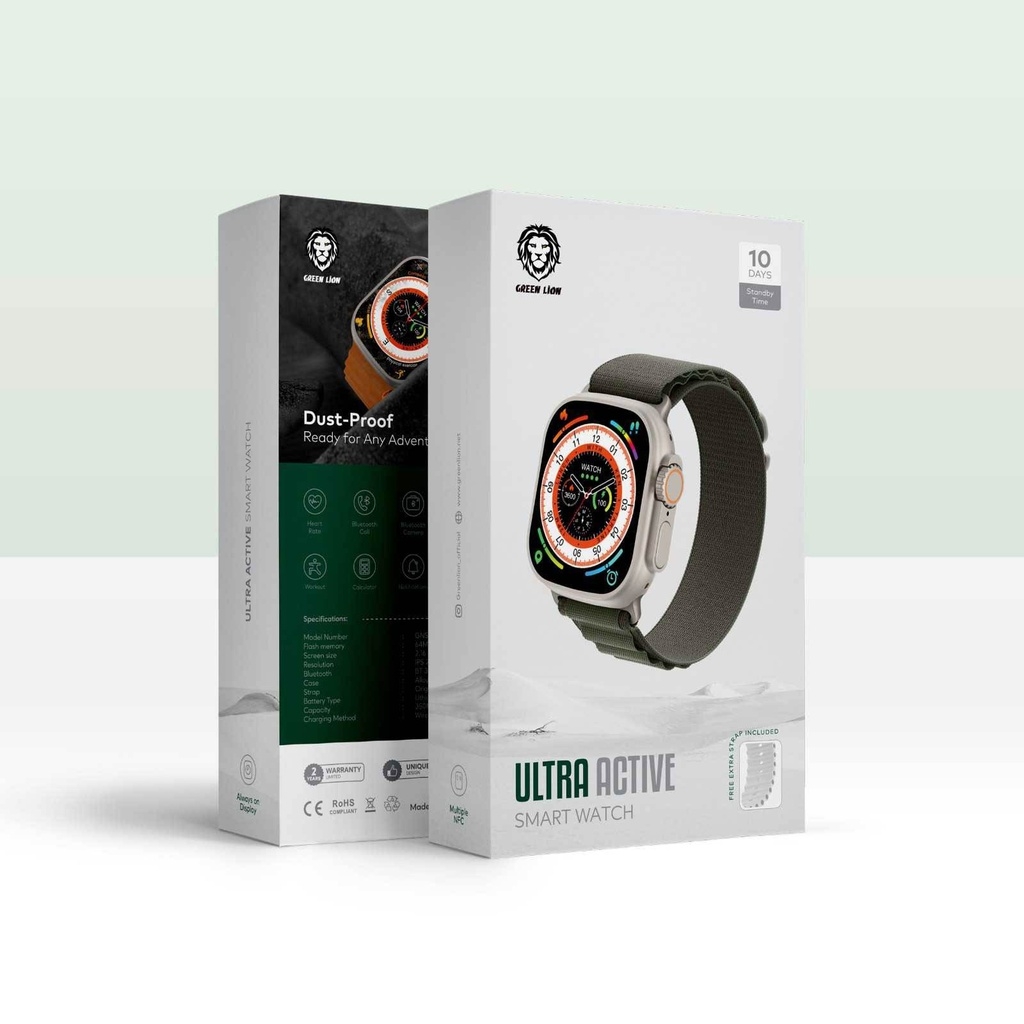 ساعت هوشمند گرین لیون اولترا اکتیو، همراهی همهکاره برای فعالیتهای روزانه شماست. عملکرد قدرتمند این ساعتهای هوشمند، پیگیری سلامت و عملکرد فعالیت شما را تا 10 روز بدون نیاز به شارژ مجدد آسان میکند، بنابراین، بهترین همراه برای ماجراجویان است. در میان تمام ویژگیهای رایج ساعتهای هوشمند، مانند امکان دسترسی به گزارش تماسها و دوربین تلفنهای هوشمند یا محاسبه مدت تمرین، زمان و کالری سوزانده شده، ساعت هوشمند گرین لیون اولترا اکتیو دارای گواهینامه 1P68 است که به بهترین عملکرد آن در برابر گرد و غبار و آب اشاره دارد و فناوری ECG برای دسترسی آسان به عملکرد ضربان قلب و هشدار در صورت هرگونه ناهنجاری به شما کمک میکند. در نتیجه، ویژگیهای منحصر به فرد ساعت هوشمند گرین لیون اولترا اکتیو به همراه تنوع رنگهای آن، آن را به بهترین انتخاب برای هر کسی که به بدن و فردیت خود اهمیت میدهد، تبدیل میکند.