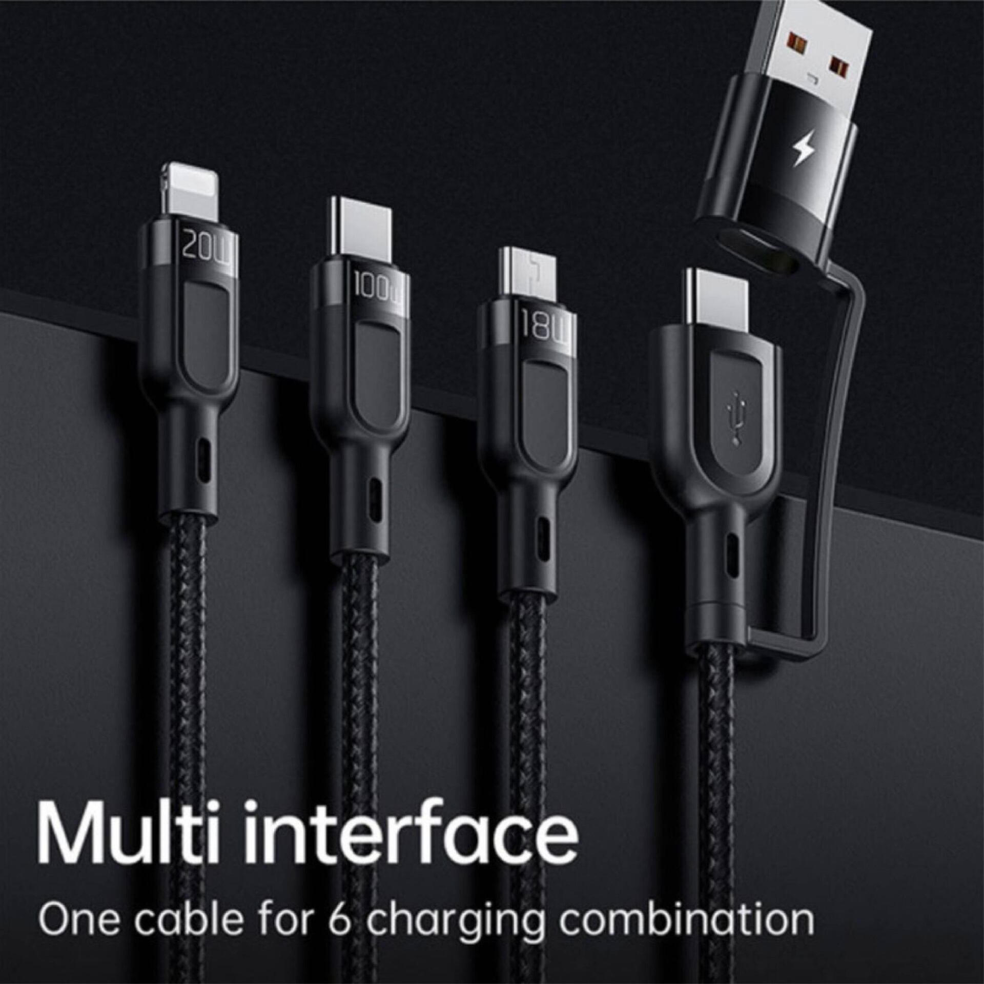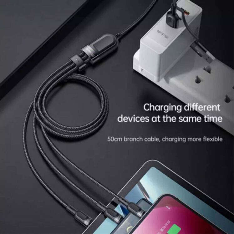 کابل 2 به 3 ... ورودی دو پورت USB و Type-C خروجی سه پورت Lightning و Micro Usb و Type-C ... شش حالت مختلف استفاده از کابل : USB به MICRO-USB ... USB به تایپ سی ... USB به لایتنینگ ... Type-C به MICRO-USB ... Type-C به تایپ سی ... Type-Cبه لایتنینگ