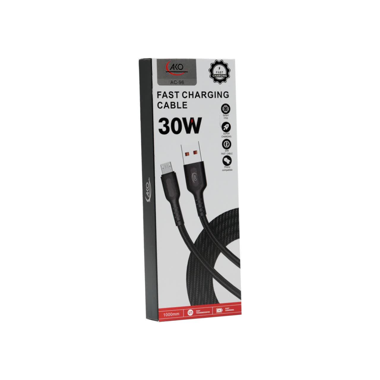 کابل شارژ و انتقال دیتا USB به MICRO-USB آکو مدل AC-96، طول 1 متر، توان 30وات