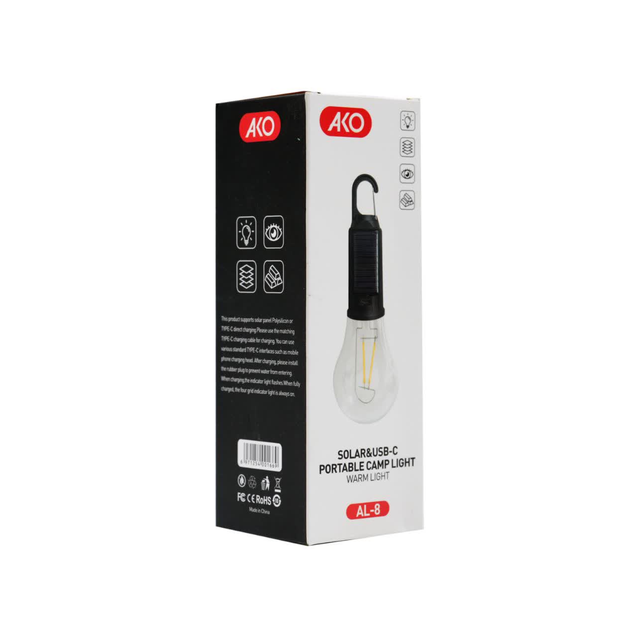 چراغ کمپ قابل حمل خورشیدی و USB-C آکو مدل AL-8