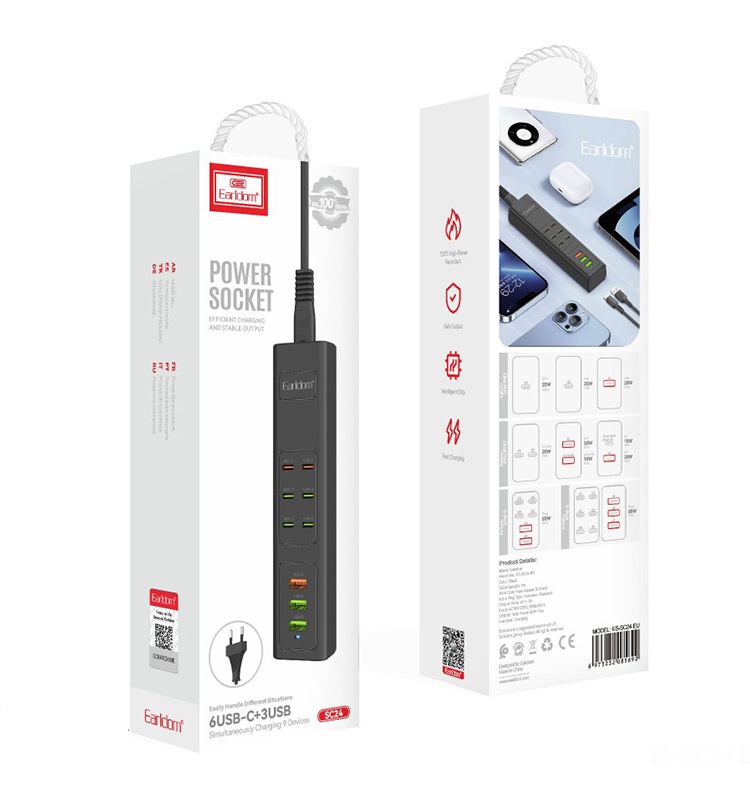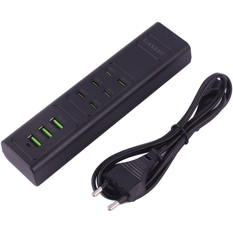 شارژر رومیزی ارلدام مدل ES-SC24 دارای 9پورت (دو پورت PD و یک پورت QC3.0) با توان 55 وات