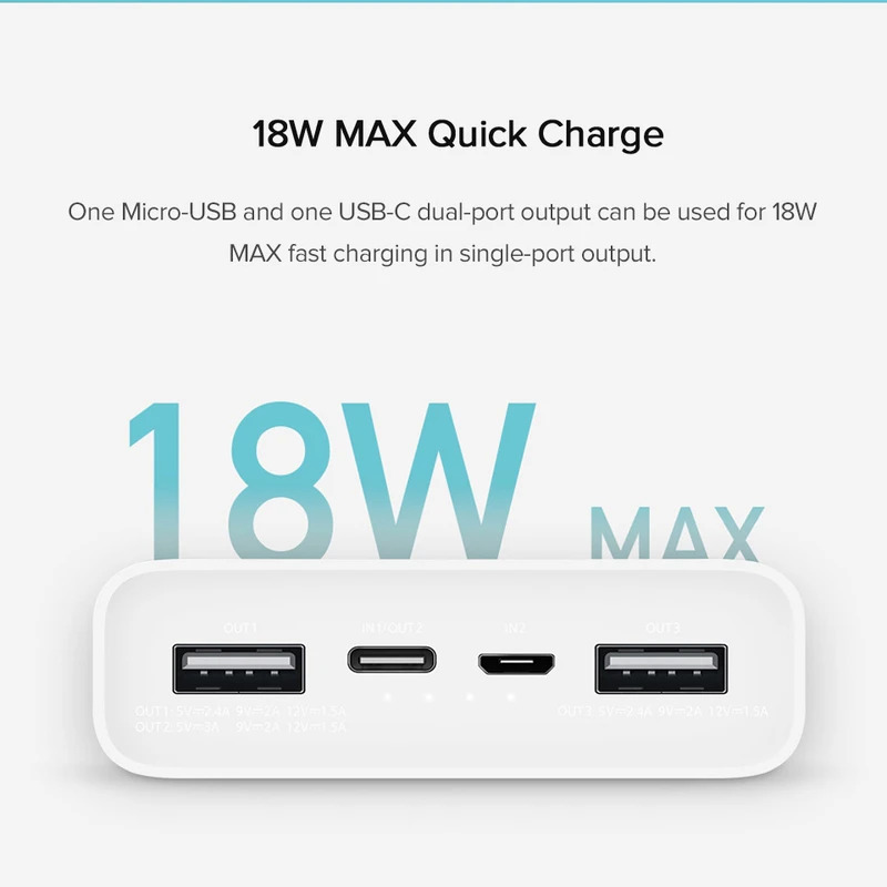 شیائومی یکی از برترین برندهای پاوربانک در جهان است. پاوربانک های این شرکت از حیث قیمت، کارایی بالاتری دارند. همین مسئله علاوه بر طول عمر بالای این محصولات سبب محبوبیت بسیار بالای پاوربانک های شیائومی میان مردم شده است. یکی از محبوبترین پاوربانک های این شرکت، سری Mi PowerBank است که بعنوان اصلی ترین مدل پاوربانک شیائومی شناخته می شود. سالانه نیز نسخه ای جدید از آن به بازار عرضه می شود. امسال نیز ورژن سوم این پاوربانک با نام Xiaomi Mi PowerBank 3 ارائه شده است که قابلیت های بهتری را نسبت به قبل به کاربر ارائه می دهد. پاوربانک شیائومی Xiaomi Mi PowerBank 3 دارای دو پورت خروجی یو اس بی می باشد که هرکدام شدت جریان و ولتاژ معادل 2 آمپر / 5 ولت دارد. همچنین این پورت ها دارای قابلیت شارژ دستگاه های شما با توان 18 وات را دارد. هرکدام از پورت های یو اس بی می توانند بصورت جداگانه تا توانی معادل 18 وات را به گوشی شما انتقال دهند. همچنین به علت داشتن چیپست هوشمند داخل این پاوربانک، با اتصال دستگاه های خود به پاوربانک ورژن 3 شیائومی، خیالتان از انتقال جریان بیش از حد به دستگاهتان راحت است. زیرا این چیپست توان مورد نیاز دستگاه را تشخیص و می تواند حداکقر تا 2A/5V توان و جریان خروجی داشته باشد. همچنین شیائومی از موج جدید راه افتاده در پورت ها، یعنی پورت Type-C عقب نمانده و علاوه بر پورت مرسوم Micro USBیک پورت تایپ سی نیز جهت شارژ پاوربانک روی آن تعبیه کرده است. علاوه بر شارژ اینکه پورت تایپ سی قرار گرفته روی پاوربانک قابلیت خروجی دارد توانایی شارژ خود پاوربانک با توان 18 وات را نیز دارد. از دیگر قابلیت هایی که شیائومی برای مدل Xiaomi Mi Power Bank 3 PLM18ZM قرار داده، استفاده از قابلیت QC3 یا همان شارژ سریع است که در هر سه پورت خروجی گنجانده شده و می توان به راحتی از آن استفاده کرد. علاوه بر این با دوبار فشردن کلید پاوربانک، وارد مود ولتاژ پایین خواهید شد و می توانید ساعت هوشمند و هندزفری های خود را نیز با خیال راحت با آن شارژ کنید.