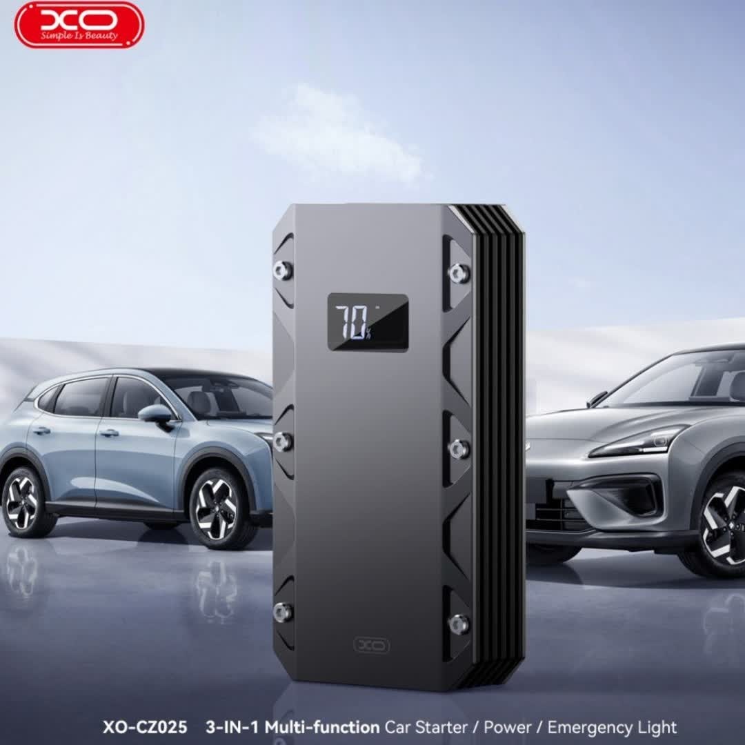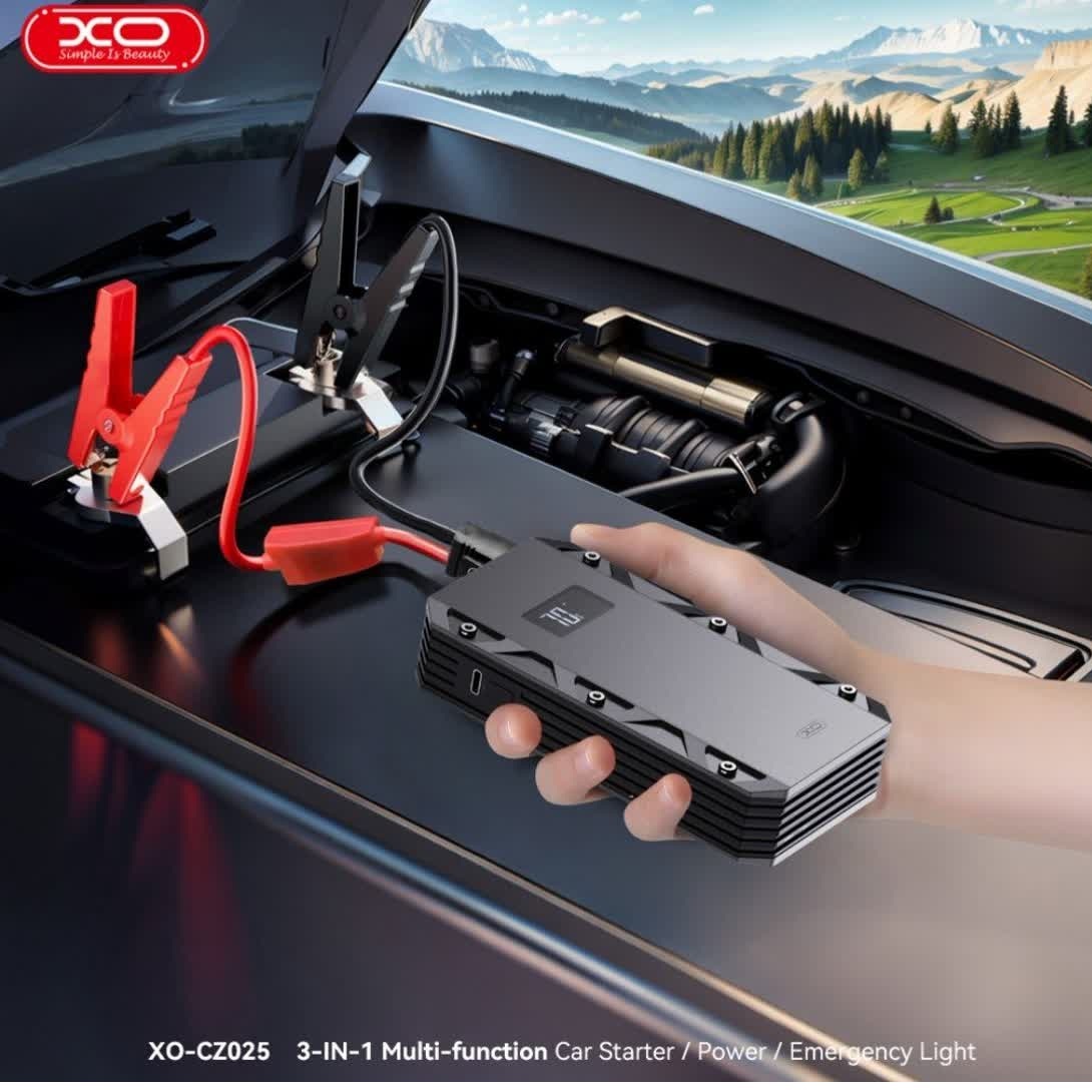 جامپ استارتر خودرو ایکس او مدل CZ025، استارتر چندکاره، پاوربانک و چراغ LED اضطراری