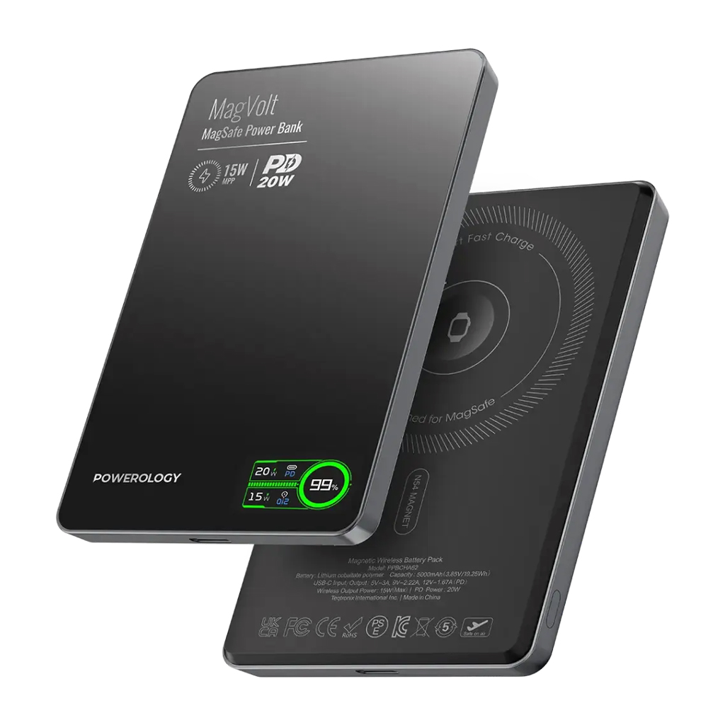 پاوربانک مغناطیسی پاورولوژی مگولت ۵۰۰۰ میلیآمپرساعت، یک قطعه فناوری خیرهکننده است که شارژ فوقالعاده باریک و کارآمد را در کنار طراحی زیبا ارائه میدهد. این پاوربانک که تنها ۱۰ میلیمتر ضخامت دارد، به راحتی در جیب شما قرار میگیرد و از ویژگی شارژ مغناطیسی خود که اتصال محکمی را با دستگاههای سازگار تضمین میکند، بهرهمند میشود. به لطف شارژ سریع ۲۰ وات PD و پشتیبانی از شارژ بیسیم ۱۵ وات، این پاوربانک در شارژ تلفنها، تبلتها و سایر دستگاهها بسیار سریع است. صفحه نمایش LED هوشمند، میزان باتری را در لحظه نشان میدهد، بنابراین شما همیشه از وضعیت شارژ آگاه هستید. این پاوربانک برای MagSafe بسیار خوب طراحی شده است و از این رو میتوان آن را برای شارژ بسیار سریع و پایدار، با اطمینان بسیار به دستگاههای شما متصل کرد. این پاوربانک دارای ظرفیت باتری عظیم ۵۰۰۰ میلیآمپرساعت است که قطعاً میتواند چندین بار شارژ را در خود جای دهد و خروجی ساعت امکان شارژ بسیار آسان ساعتهای هوشمند را فراهم میکند. پاوربانک مغناطیسی پاورولوژی مگولت ۵۰۰۰ میلیآمپرساعت، صرف نظر از اینکه برای شارژ در حین حمل و نقل یا در خانه استفاده شود، عملکرد قوی و قابل اعتمادی را ارائه میدهد