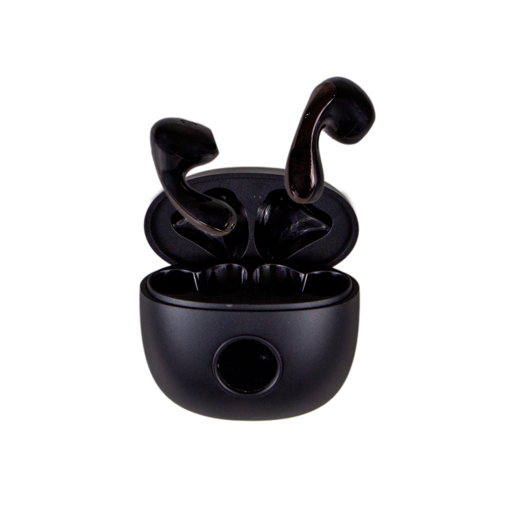 پاورکیس آن در ابعاد بسیار مناسب قرار داشته و از جنس پلاستیک فشرده با دوام مناسب ساخته شده است و در قسمت جلویی کیس یک صفحه نمایشگر تعبیه شده که میزان شارژ دستگاه را به شما نمایش میدهد. بادزهای استفاده شده در این هندزفری با شکلی بسیار شیک بوده و این طراحی بادز را بسیار خاص جلوه میدهد .