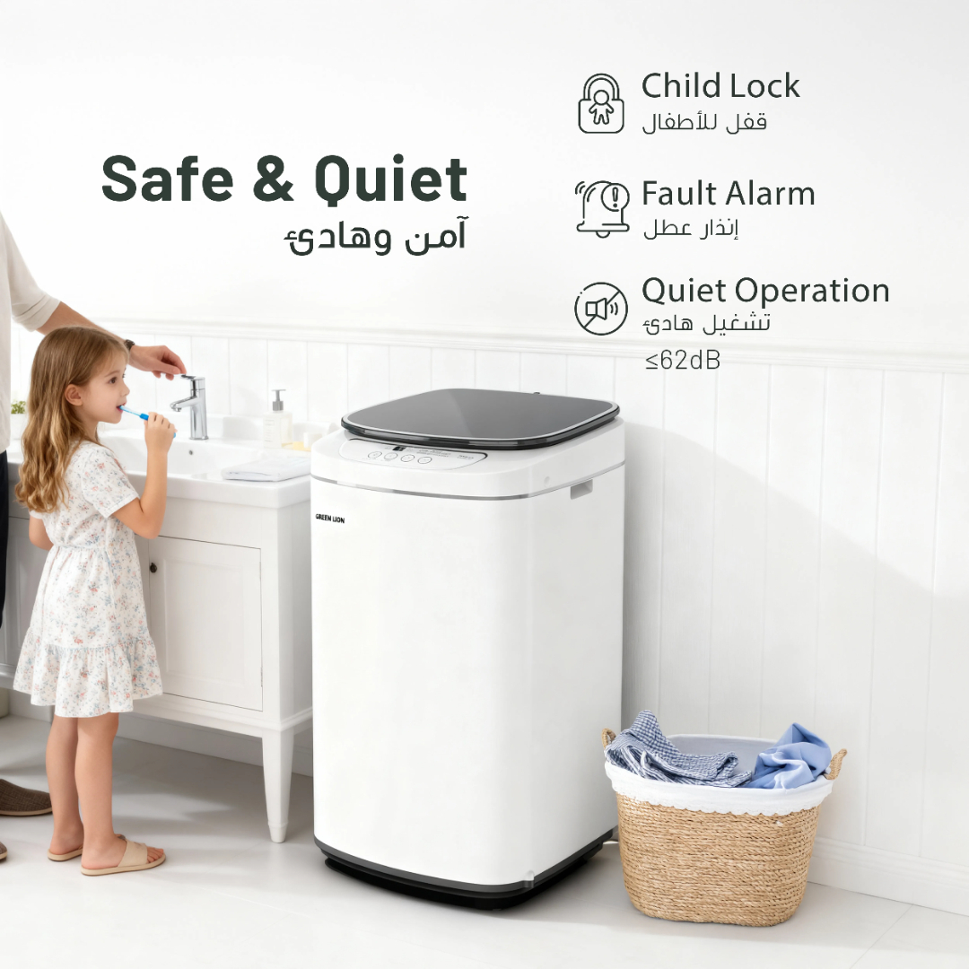 ماشین لباسشویی جمع و جور ۲۲ لیتری تمام اتوماتیک گرین لیون - سفید، که برای راحتی و کارایی طراحی شده است، نوآوری قابل توجهی است که ویژگیهای آن مطمئناً روال شستشوی کاربر را متحول خواهد کرد. این ماشین لباسشویی میتواند تا ۳.۸ کیلوگرم لباس را شستشو و آبگیری کند و دارای مخزن ۲۲ لیتری از جنس استیل ضد زنگ است که آن را به ماشین لباسشویی ایدهآل برای خانوادههای کوچک یا حتی آپارتمانهای تک نفره تبدیل میکند. این ماشین لباسشویی دارای موتور ۳۵۰ واتی است که با غلتکی با عملکرد فوقالعاده بیصدا (کمتر یا مساوی ۶۲ دسیبل) کار میکند و در عین حال در تمیز کردن بسیار مؤثر و در عین حال بسیار کاربرپسند است. این ماشین لباسشویی با ۸ برنامه شستشوی هوشمند خود، قادر است تقریباً همه چیز را از ظریفترین تا سختترین پارچهها، و همچنین دشوارترین نیازهای شستشو، برطرف کند این دستگاه دارای خاموش شدن خودکار، رتبه ضد آب IPX4 و ایمنی کودکان از طریق قفل است. این دستگاه دارای طراحی کممصرف (درجه 3) است که تضمین میکند در عین حفظ عملکرد خوب، برق هدر نرود. سیستمهای تخلیه از پایین و فشار آب قابل تنظیم (0.03-0.85 مگاپاسکال) عملکرد بسیار روان را فراهم میکنند، در حالی که صفحه نمایش LED به کاربر کنترل کامل بر چرخههای شستشو را میدهد. ماشین لباسشویی گرین لیون 22 لیتری جمع و جور اما قدرتمند است، ترکیبی عالی از فناوری مدرن و طراحی کاربردی، در نتیجه تجربه شستشوی آسان با دقت، ایمنی و قابلیت اطمینان را به کاربر میدهد.ماشین لباسشویی جمع و جور ۲۲ لیتری تمام اتوماتیک گرین لیون - سفید، که برای راحتی و کارایی طراحی شده است، نوآوری قابل توجهی است که ویژگیهای آن مطمئناً روال شستشوی کاربر را متحول خواهد کرد. این ماشین لباسشویی میتواند تا ۳.۸ کیلوگرم لباس را شستشو و آبگیری کند و دارای مخزن ۲۲ لیتری از جنس استیل ضد زنگ است که آن را به ماشین لباسشویی ایدهآل برای خانوادههای کوچک یا حتی آپارتمانهای تک نفره تبدیل میکند. این ماشین لباسشویی دارای موتور ۳۵۰ واتی است که با غلتکی با عملکرد فوقالعاده بیصدا (کمتر یا مساوی ۶۲ دسیبل) کار میکند و در عین حال در تمیز کردن بسیار مؤثر و در عین حال بسیار کاربرپسند است. این ماشین لباسشویی با ۸ برنامه شستشوی هوشمند خود، قادر است تقریباً همه چیز را از ظریفترین تا سختترین پارچهها، و همچنین دشوارترین نیازهای شستشو، برطرف کند این دستگاه دارای خاموش شدن خودکار، رتبه ضد آب IPX4 و ایمنی کودکان از طریق قفل است. این دستگاه دارای طراحی کممصرف (درجه 3) است که تضمین میکند در عین حفظ عملکرد خوب، برق هدر نرود. سیستمهای تخلیه از پایین و فشار آب قابل تنظیم (0.03-0.85 مگاپاسکال) عملکرد بسیار روان را فراهم میکنند، در حالی که صفحه نمایش LED به کاربر کنترل کامل بر چرخههای شستشو را میدهد. ماشین لباسشویی گرین لیون 22 لیتری جمع و جور اما قدرتمند است، ترکیبی عالی از فناوری مدرن و طراحی کاربردی، در نتیجه تجربه شستشوی آسان با دقت، ایمنی و قابلیت اطمینان را به کاربر میدهد.